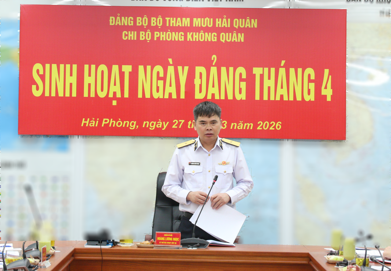 HQ Online - Sáng 27/3, tại Hải Phòng, Chi bộ Phòng Không quân đã tổ chức sinh hoạt chi bộ tháng 4 năm 2026. Đây là chi bộ cơ sở được Đảng bộ Bộ Tham mưu Hải quân chỉ định làm trước để rút kinh nghiệm chung trong toàn Đảng bộ.