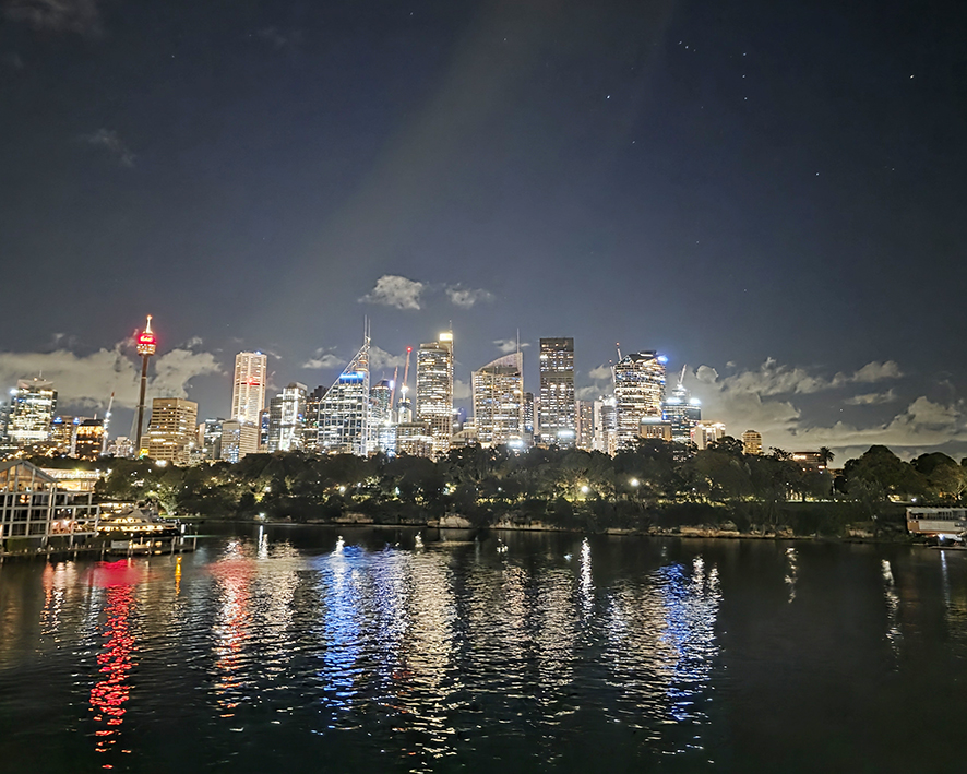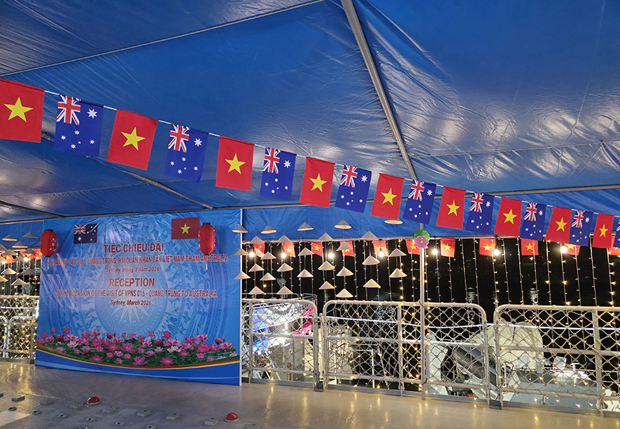 HQ Online - Sau khi tham dự Lễ duyệt binh tàu hải quân quốc tế nhân kỷ niệm 125 năm Ngày truyền thống Hải quân Hoàng gia Australia, tàu hải quân các nước neo đậu tại cảng Sydney để tham gia các hoạt động đa phương trên bờ. Về đêm, các tàu đều trang hoàng cờ đèn làm cho cảng Sydney lung linh sắc màu. Ghi nhận của phóng viên Báo Hải quân Việt Nam.
