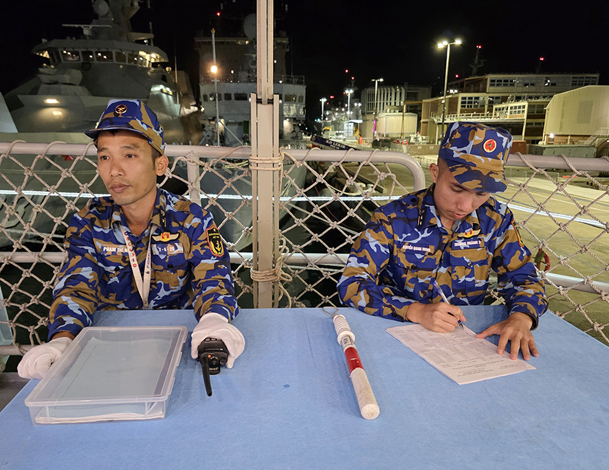Tàu 016-Quang Trung duy trì chặt chẽ trực đăng ký khách và quân nhân lên xuống tàu