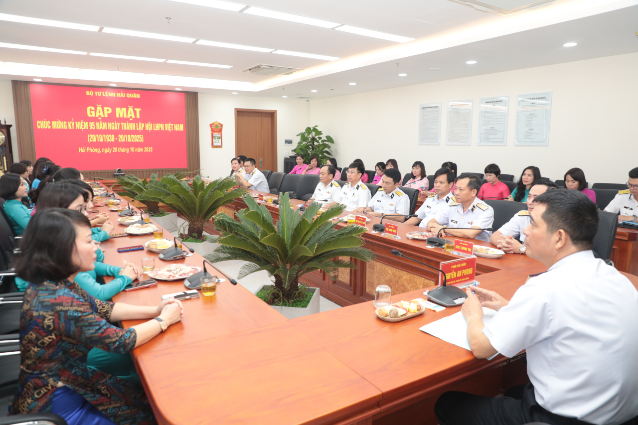 HQ Online - Sáng 20/10, tại Hải Phòng, Phó Đô đốc Nguyễn An Phong, Bí thư Đảng ủy, Chính ủy Hải quân gặp mặt chúc mừng đại diện cán bộ, hội viên phụ nữ cơ quan Bộ Tư lệnh Hải quân nhân dịp kỷ niệm 95 năm Ngày thành lập Hội LHPN Việt Nam (20/10/1930 - 20/10/2025) và 15 năm Ngày phụ nữ Việt Nam (20/10/2010 - 20/10/2025). Cùng dự có thủ trưởng Bộ Tham mưu, Cục Chính trị, Cục Hậu cần-Kỹ thuật Hải quân; đại biểu một số cơ quan chức năng Quân chủng.