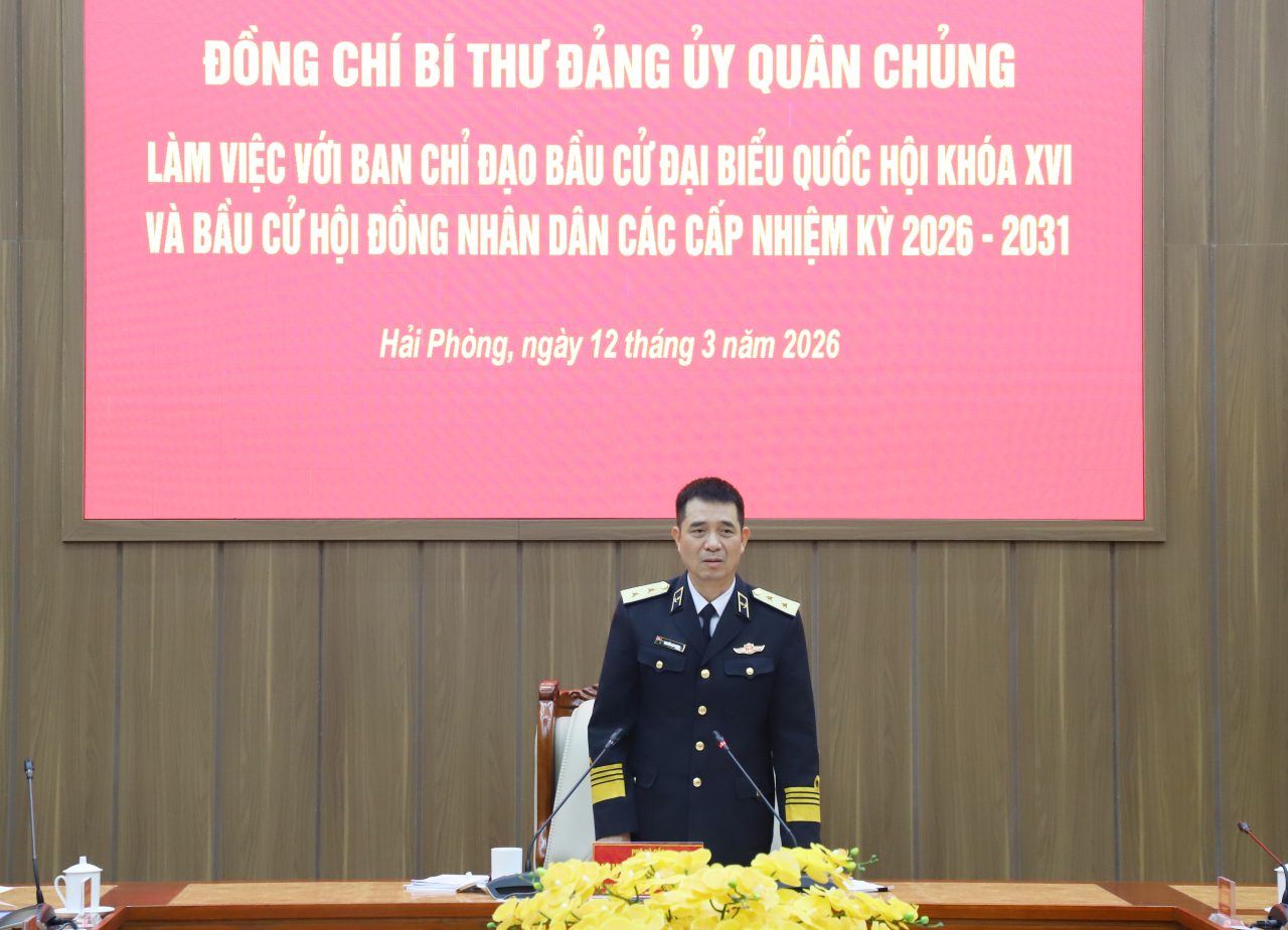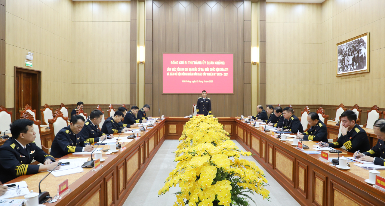 HQ Online - Chiều 12/3, tại Hải Phòng, Phó Đô đốc Nguyễn An Phong, Bí thư Đảng ủy, Chính ủy Hải quân đã làm việc với Ban chỉ đạo bầu cử Quốc hội khóa XVI và bầu cử đại biểu Hội đồng nhân dân (HĐND) các cấp nhiệm kỳ 2026 - 2031 của Quân chủng Hải quân. Cùng dự có: Chuẩn Đô đốc Đỗ Văn Yên, Phó Chính ủy Hải quân, Trưởng ban chỉ đạo bầu cử Quân chủng; thủ trưởng Bộ Tham mưu, Cục Chính trị, Cục Hậu cần - Kỹ thuật; đại biểu các cơ quan chức năng Quân chủng.