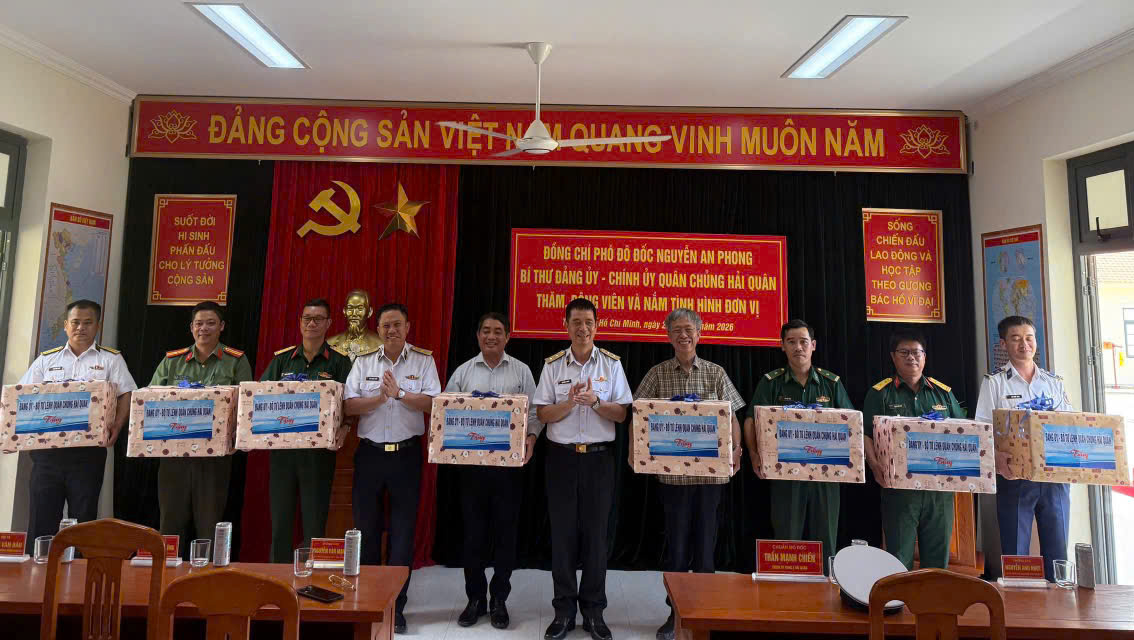 Phó Đô đốc Nguyễn An Phong đã ân cần thăm hỏi, động viên cán bộ, chiến sĩ; ghi nhận, biểu dương tinh thần đoàn kết, nỗ lực khắc phục khó khăn, hoàn thành tốt nhiệm vụ của đơn vị.
