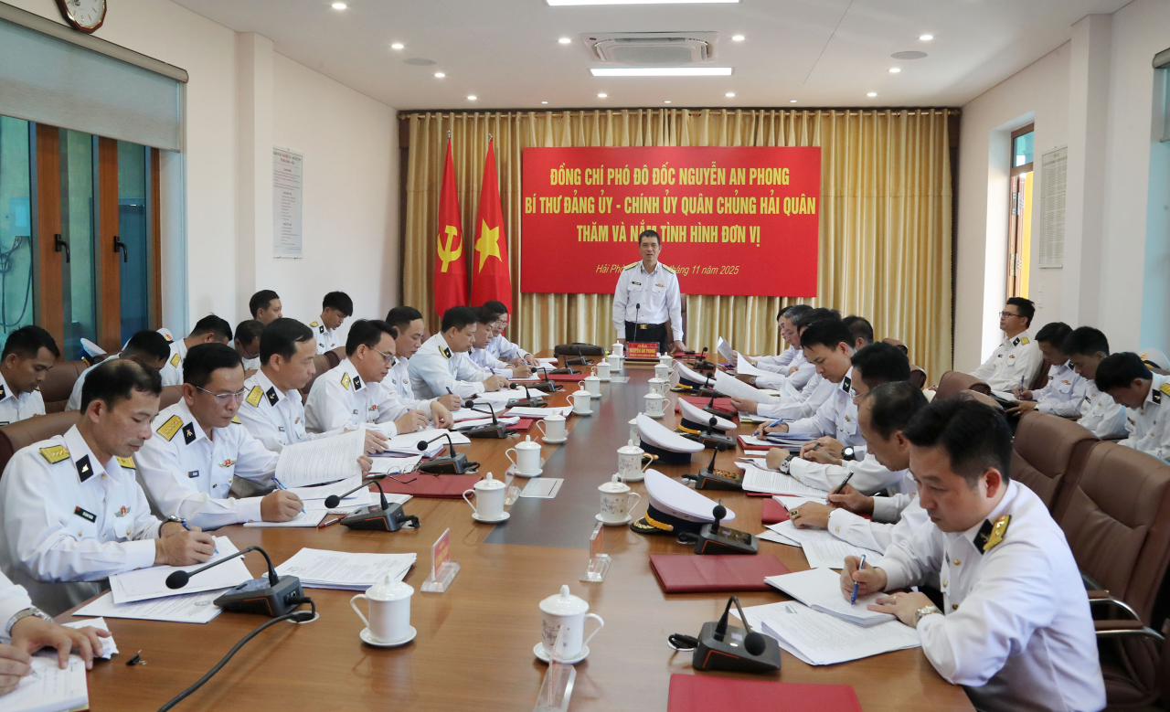 Đồng chí Chính ủy Hải quân cũng yêu cầu đơn vị chăm lo tốt đời sống vật chất, tinh thần cho bộ đội; phát huy dân chủ, đoàn kết nội bộ, xây dựng tổ chức đảng trong sạch, vững mạnh, gắn với xây dựng đơn vị vững mạnh toàn diện “mẫu mực, tiêu biểu”, hoàn thành xuất sắc mọi nhiệm vụ được giao, cùng các lực lượng trong Quân chủng bảo vệ vững chắc chủ quyền biển đảo của Tổ quốc.