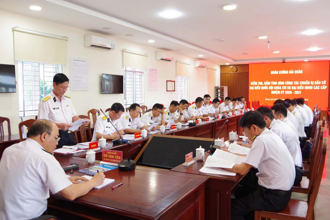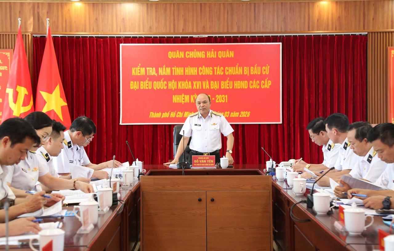 HQ Online - Chiều 5/3, tại xã Long Sơn (TP Hồ Chí Minh), Chuẩn Đô đốc Đỗ Văn Yên, Phó Chính ủy Hải quân chủ trì buổi kiểm tra công tác chuẩn bị bầu cử đại biểu Quốc hội khóa XVI và đại biểu Hội đồng nhân dân các cấp nhiệm kỳ 2026-2031 tại Vùng 2 Hải quân.