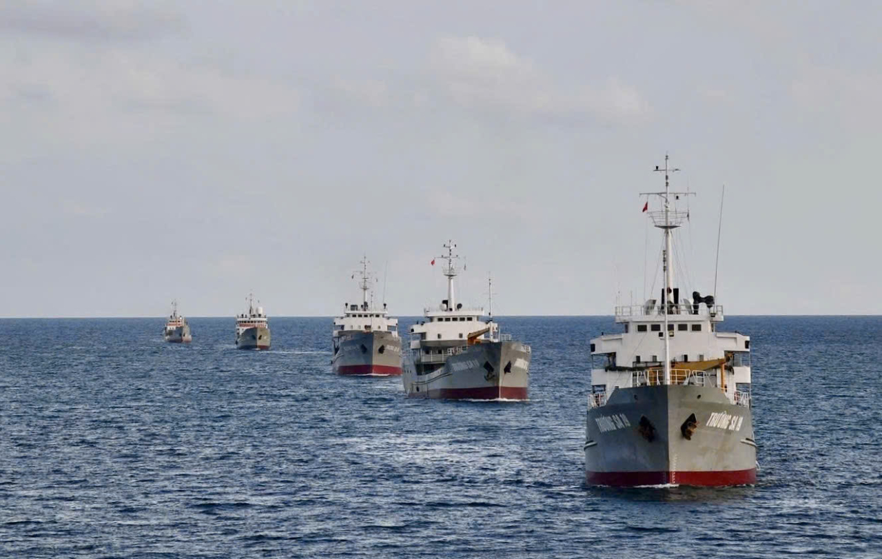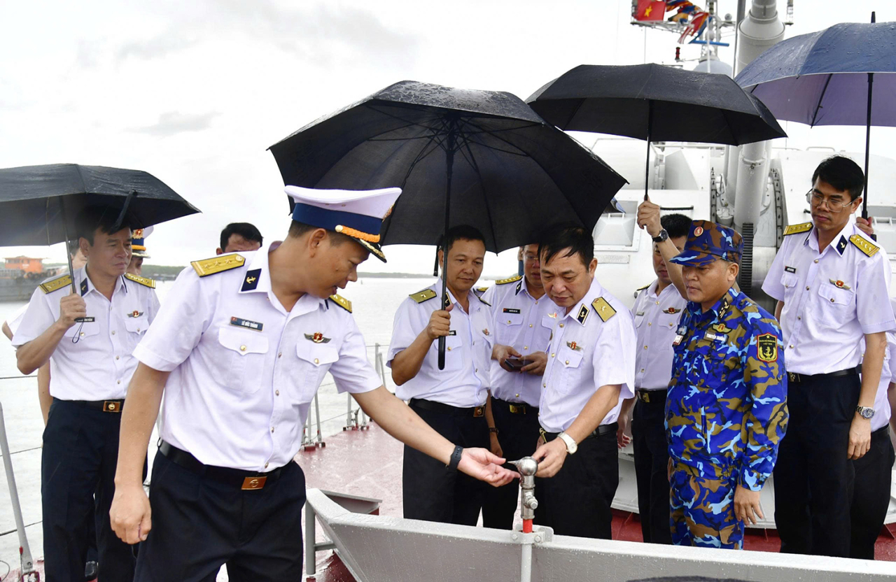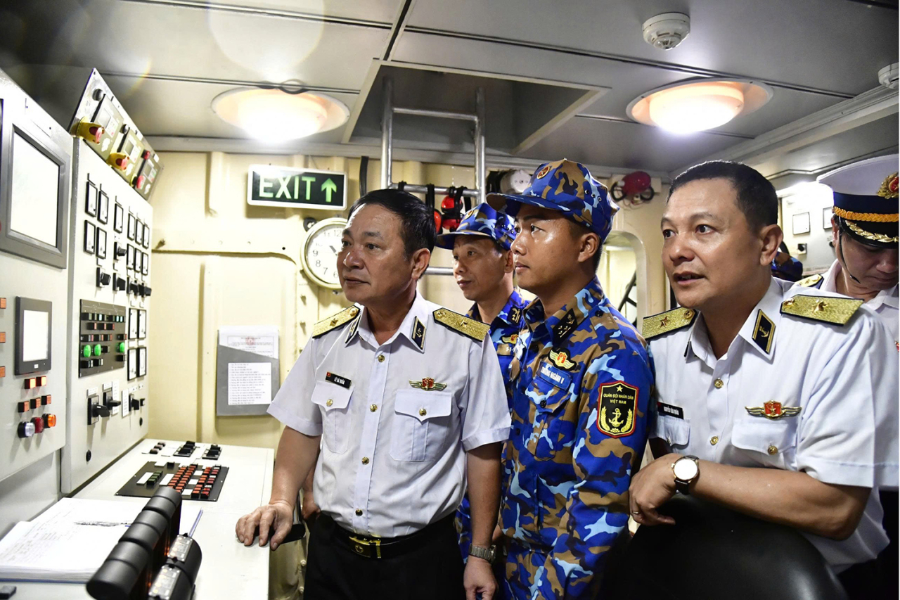 Chuẩn Đô đốc Lê Bá Quân kiểm tra trên tàu của Lữ đoàn 167