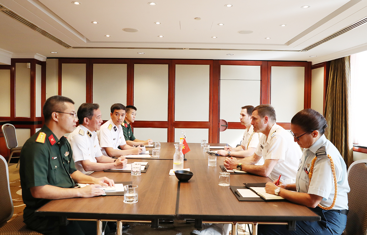 HQ Online - Nhân dịp dự Lễ kỷ niệm 125 năm Ngày thành lập Hải quân Hoàng gia Australia, sáng 23/3, tại khách sạn Shangri-La Sydney, Australia, Chuẩn Đô đốc Nguyễn Đình Hùng, Phó Tư lệnh Hải quân nhân dân Việt Nam đã có cuộc gặp song phương với Phó Đô đốc Angus Topshee, Tư lệnh Hải quân Hoàng gia Canada.