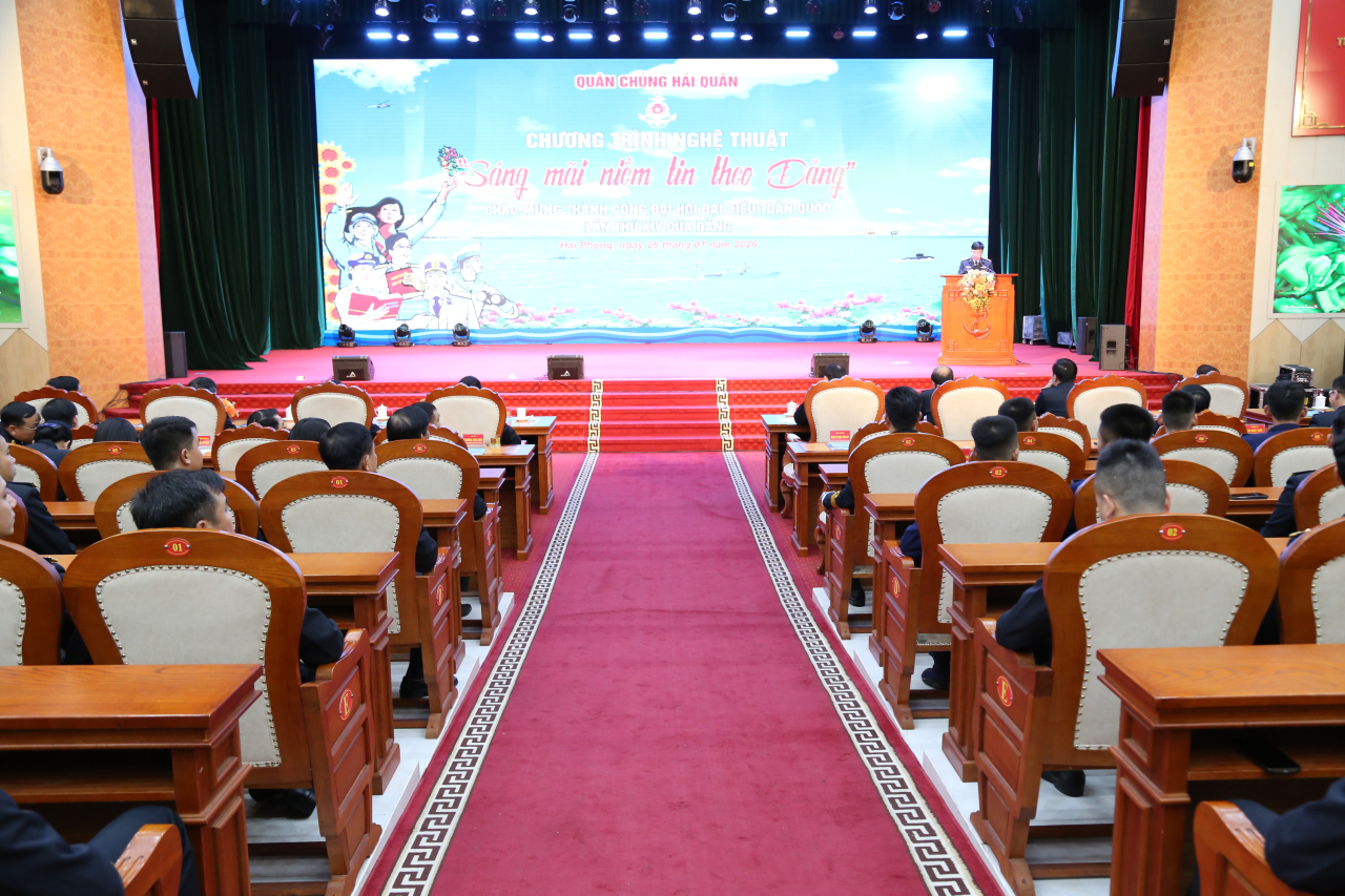 Chào mừng thành công Đại hội đại biểu toàn quốc lần thứ XIV của Đảng, chương trình nghệ thuật “Sáng mãi niềm tin theo Đảng” được dàn dựng công phu, nhằm ca ngợi Đảng quang vinh, Bác Hồ vĩ đại và thể hiện ý chí quyết tâm bảo vệ chủ quyền biển đảo của cán bộ, chiến sĩ Hải quân Nhân dân Việt Nam.