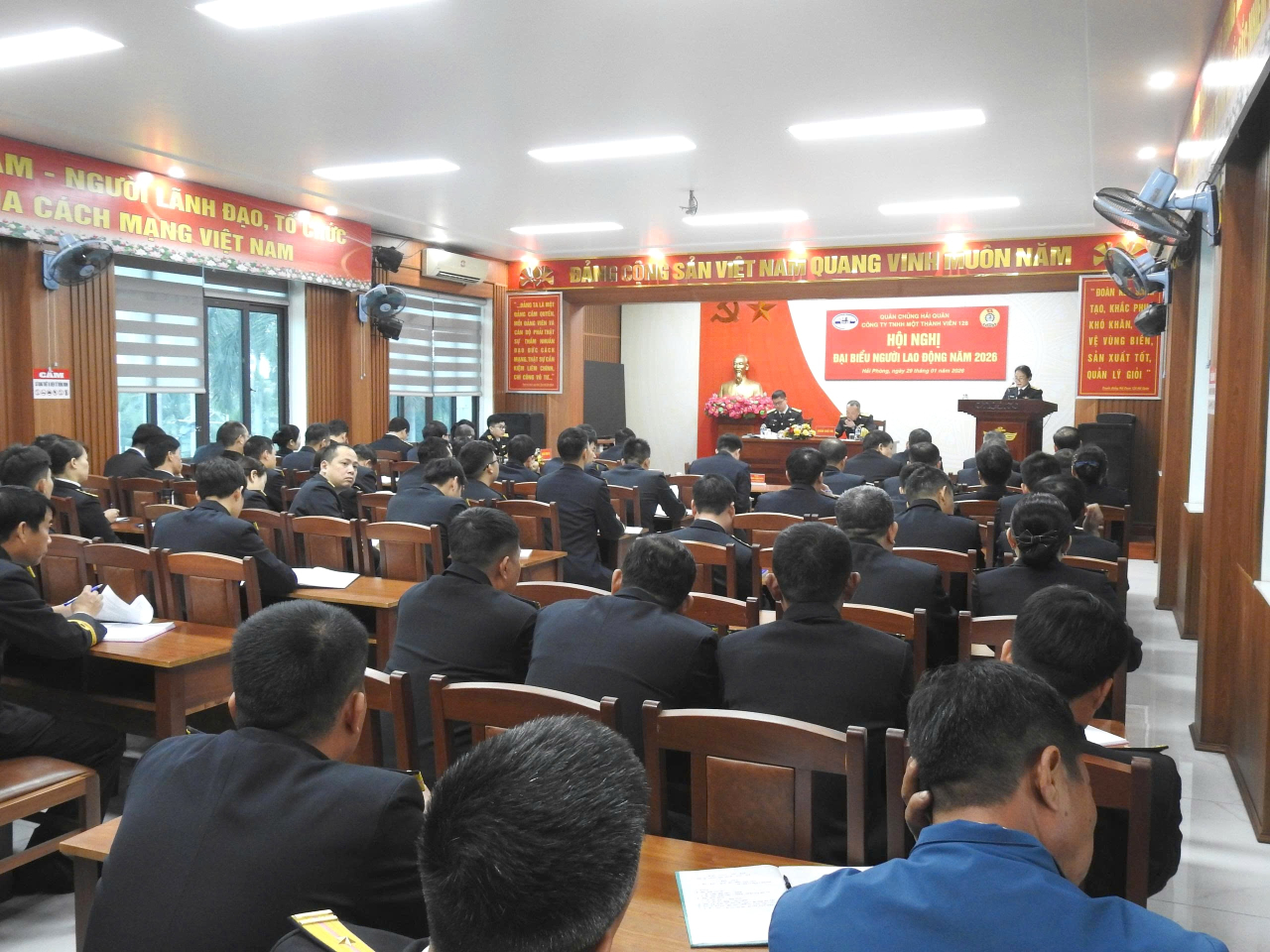 HQ Online - Sáng 29/1, tại Hải Phòng, Công ty TNHH một thành viên 128 (Quân chủng Hải quân) tổ chức Hội nghị đại biểu người lao động năm 2026. Dự, theo dõi, hướng dẫn có Đại tá Nguyễn Ngọc Dương, Trưởng phòng Công tác Quần chúng, Cục Chính trị Hải quân.