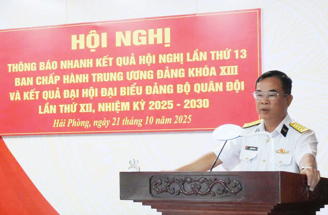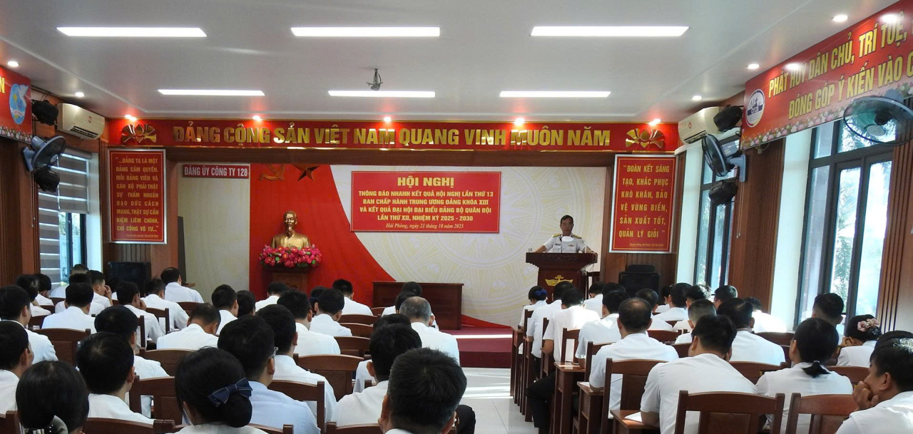 HQ Online - Sáng 21/10, tại Hải Phòng, Đảng ủy Công ty 128 tổ chức Hội nghị thông báo nhanh kết quả Hội nghị lần thứ 13 Ban Chấp hành Trung ương Đảng khóa XIII và kết quả Đại hội đại biểu Đảng bộ Quân đội lần thứ XII, nhiệm kỳ 2025 - 2030. Đại tá Hoàng Lê Minh, Bí thư Đảng ủy, Chủ tịch Công ty chủ trì.