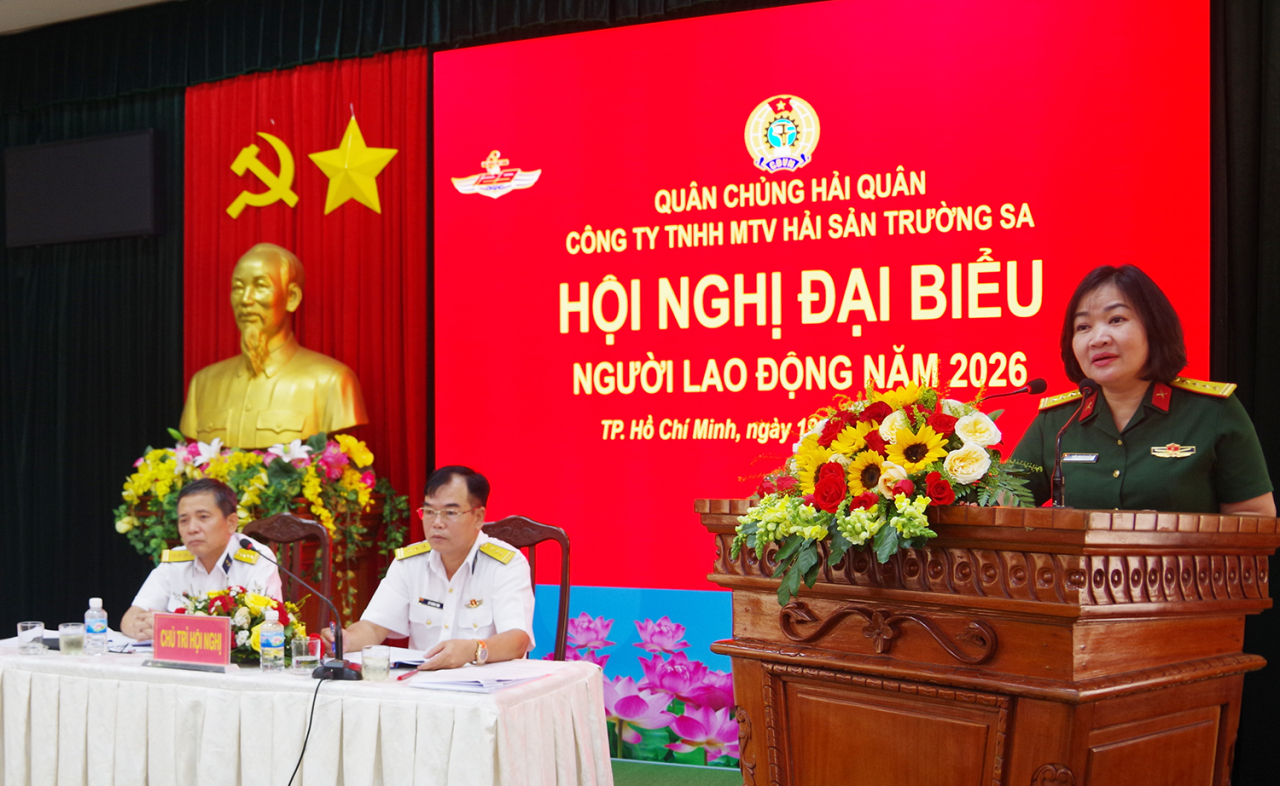 HQ Online - Ngày 19/3 tại P. Phước Thắng (TP Hồ Chí Minh), Công ty TNHH MTV Hải sản Trường Sa (Hải đoàn 129 Hải quân) tổ chức Hội nghị đại biểu người lao động năm 2026. Đại tá Bùi Quang Tú, Giám đốc Công ty và Thượng tá Phạm Văn Quý, Chủ tịch Công đoàn cơ sở Công ty đồng chủ trì. Tham dự có Đại tá Trần Thị Thu Hiền, Phó Trưởng ban Công đoàn Quốc phòng.