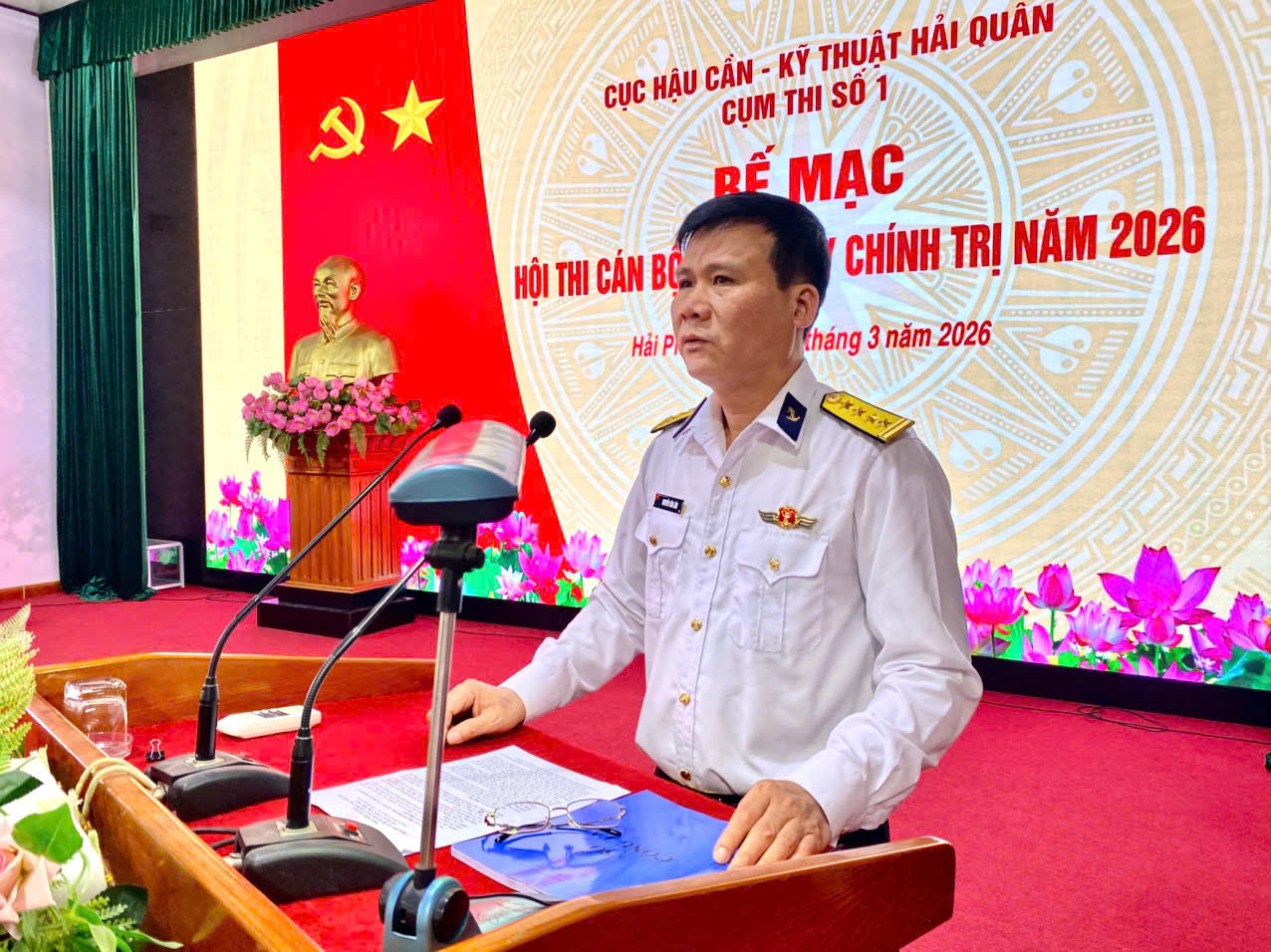 HQ Online - Ngày 26/3, tại Nhà máy X56 (phường Hải An, thành phố Hải Phòng), Cục Hậu cần - Kỹ thuật Hải quân tổ chức Hội thi cán bộ giảng dạy chính trị năm 2026 (Cụm thi số 1). Đại tá Nguyễn Văn Lâm, Chủ nhiệm Chính trị Cục Hậu cần - Kỹ thuật dự bế mạc hội thi.