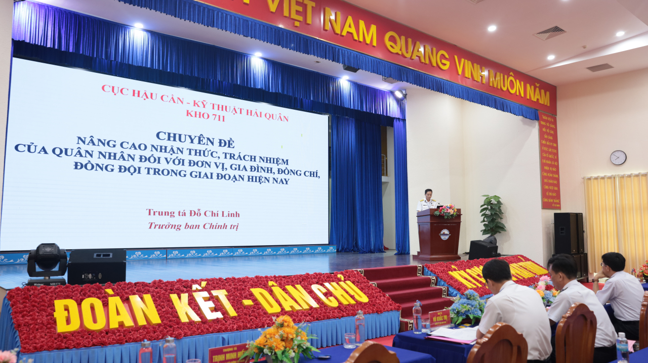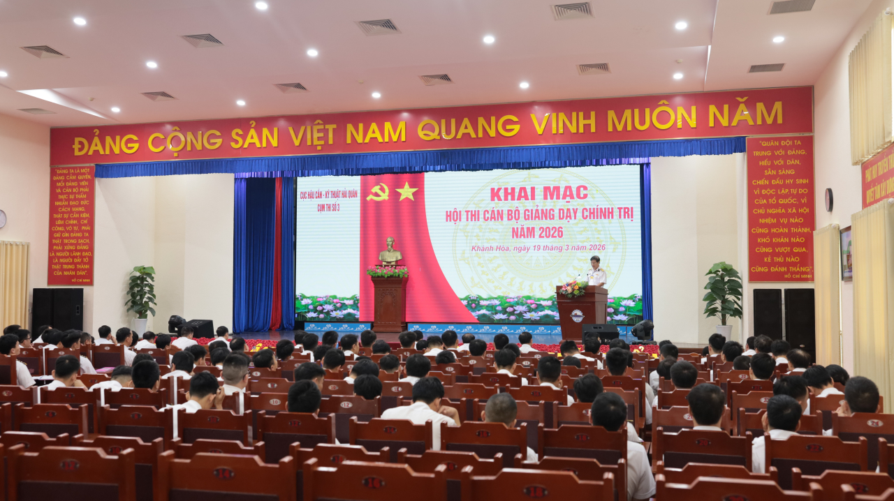 HQ Online - Ngày 19/3, tại Nhà máy X52 (phường Bắc Cam Ranh, tỉnh Khánh Hòa), Cục Hậu cần - Kỹ thuật Hải quân tổ chức Hội thi cán bộ giảng dạy chính trị năm 2026 (Cụm thi số 3) các đơn vị thuộc Cục khu vực phía Nam. Đại tá Vũ Tiến Dũng, Phó Chủ nhiệm Chính trị Cục Hậu cần - Kỹ thuật Hải quân dự chỉ đạo.
