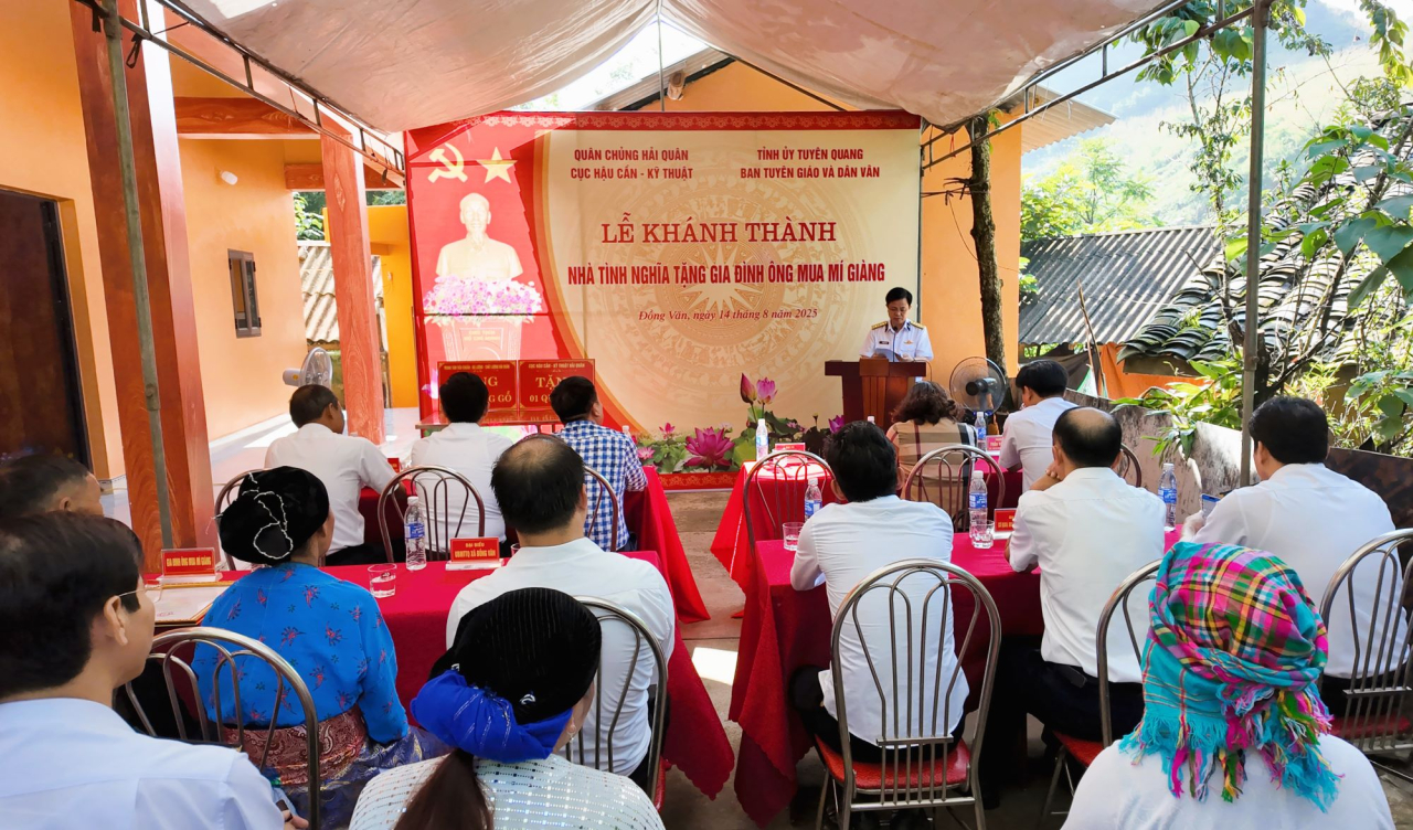 HQ Online - Sáng 14/8, tại xã Đồng Văn, tỉnh Tuyên Quang, Cục Hậu cần-Kỹ thuật Hải quân phối hợp cùng Ban Tuyên giáo và Dân vận Tỉnh ủy Tuyên Quang, tổ chức bàn giao nhà tình nghĩa tặng gia đình ông Mua Mí Giàng, nhân kỷ niệm 80 năm Cách mạng tháng Tám thành công và Quốc khánh nước Cộng hoà xã hội chủ nghĩa Việt Nam 2/9.