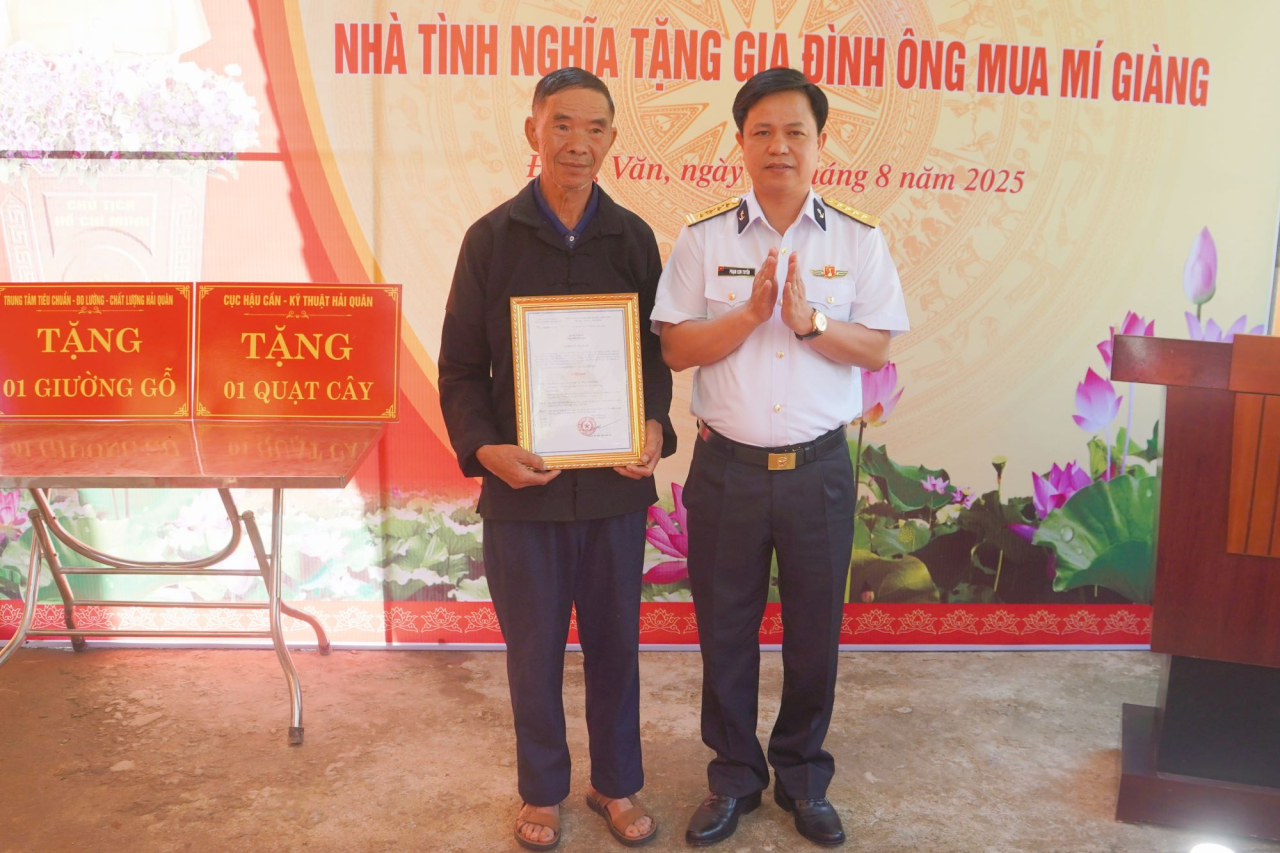 Trên cơ sở đơn xin hỗ trợ của gia đình và đề nghị của xã Đồng Văn, Cục Hậu cần-Kỹ thuật Hải quân đã giao cho Trung tâm Tiêu chuẩn - Đo lường - Chất lượng tiến hành khảo sát và tổ chức xây dựng nhà tình nghĩa tặng gia đình ông Mua Mí Giàng.