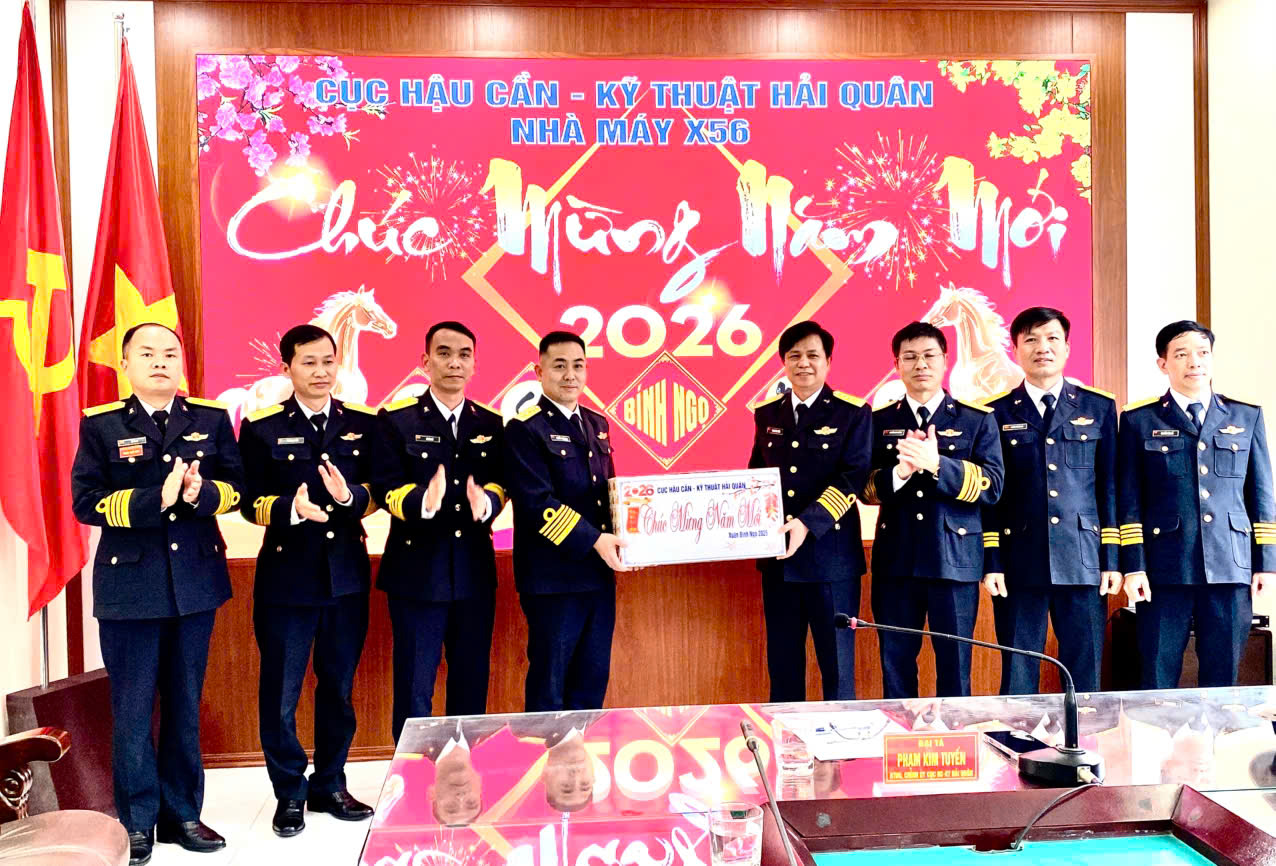 Trước đó, Nhà máy X56 đã tổ chức thăm, tặng quà các gia đình chính sách trên địa bàn đóng quân; thăm chúc Tết cấp ủy, chính quyền địa phương; các đơn vị kết nghĩa, đơn vị đóng quân trên địa bàn nhân dịp Tết nguyên đán 2026 và tặng quà, giao kinh phí hỗ trợ con ngư dân 6 tháng đầu năm tại tỉnh Ninh Bình.