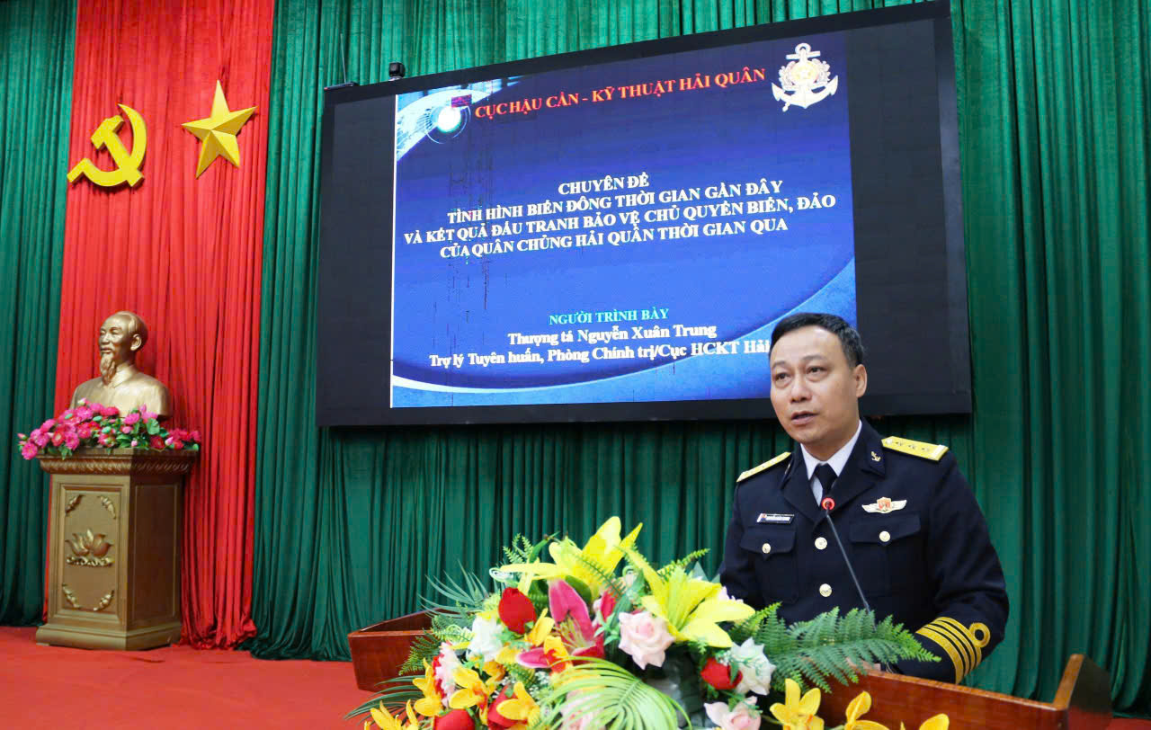 Tại hội nghị, các đại biểu đã nghe báo cáo viên của Cục Hậu cần - Kỹ thuật Hải quân thông tin tình hình biển đảo thời gian gần đây; kết quả đấu tranh bảo vệ chủ quyền biển, đảo thời gian vừa qua; dự báo tình hình Biển Đông trong thời gian tới.