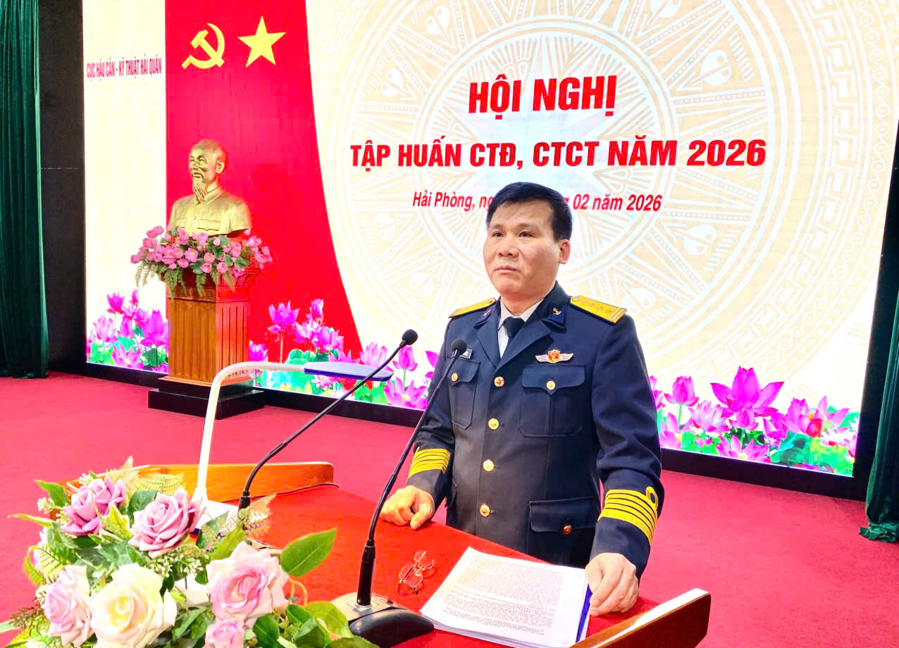 HQ Online - Ngày 9/2, tại Nhà máy X56 (thành phố Hải Phòng), Cục Hậu cần - Kỹ thuật Hải quân tổ chức Hội nghị tập huấn công tác đảng, công tác chính trị (CTĐ, CTCT) năm 2026. Đại tá Nguyễn Văn Lâm, Chủ nhiệm Chính trị Cục Hậu cần-Kỹ thuật chủ trì hội nghị.
