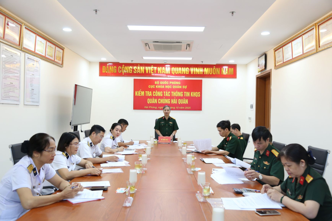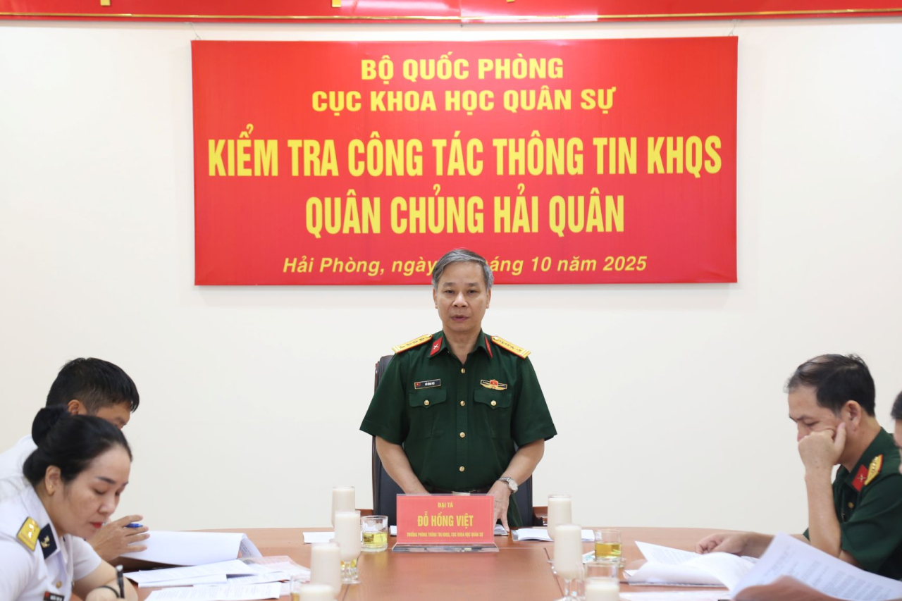 HQ Online - Sáng 24/10, tại Hải Phòng, Cục Khoa học Quân sự (Bộ Quốc phòng) tổ chức kiểm tra hoạt động thông tin khoa học quân sự (TTKHQS) của Quân chủng Hải quân. Đoàn kiểm tra do Đại tá Đỗ Hồng Việt, Trưởng phòng TTKHQS, Cục Khoa học Quân sự, làm trưởng đoàn.
