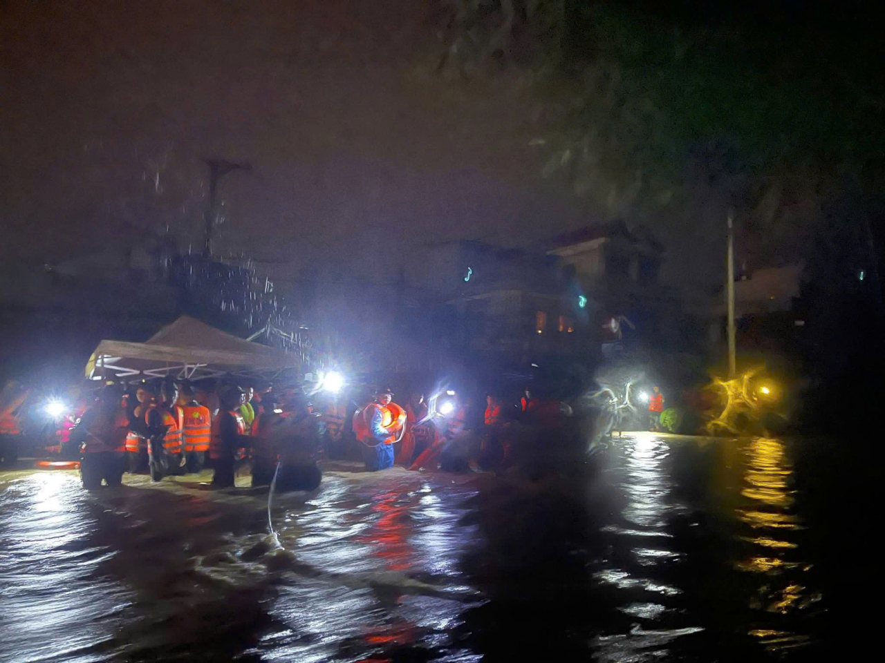 Ngay trong đêm, khi đến địa điểm ngập lụt, cán bộ, chiến sĩ đơn vị đã nhanh chóng phối hợp với các lực lượng, cơ quan chức năng xuyên đêm giúp đỡ nhân dân, sơ tán người và vật chất lên xuồng di chuyển ra nơi an toàn.