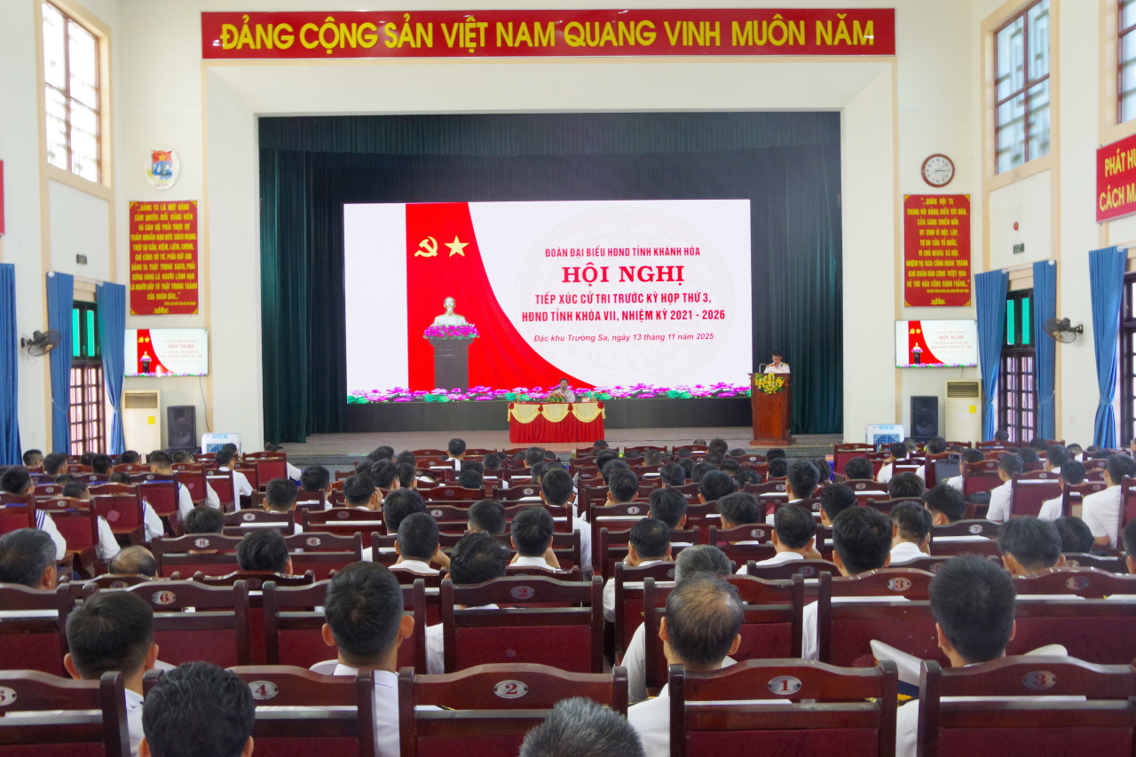 HQ Online - Chiều 13/11, tại Khánh Hòa, đoàn đại biểu Hội đồng nhân dân (HĐND) tỉnh Khánh Hòa đã tiếp xúc với 250 cử tri đặc khu Trường Sa trước kỳ họp thứ 3, HĐND tỉnh khóa VII, nhiệm kỳ 2021-2026.
