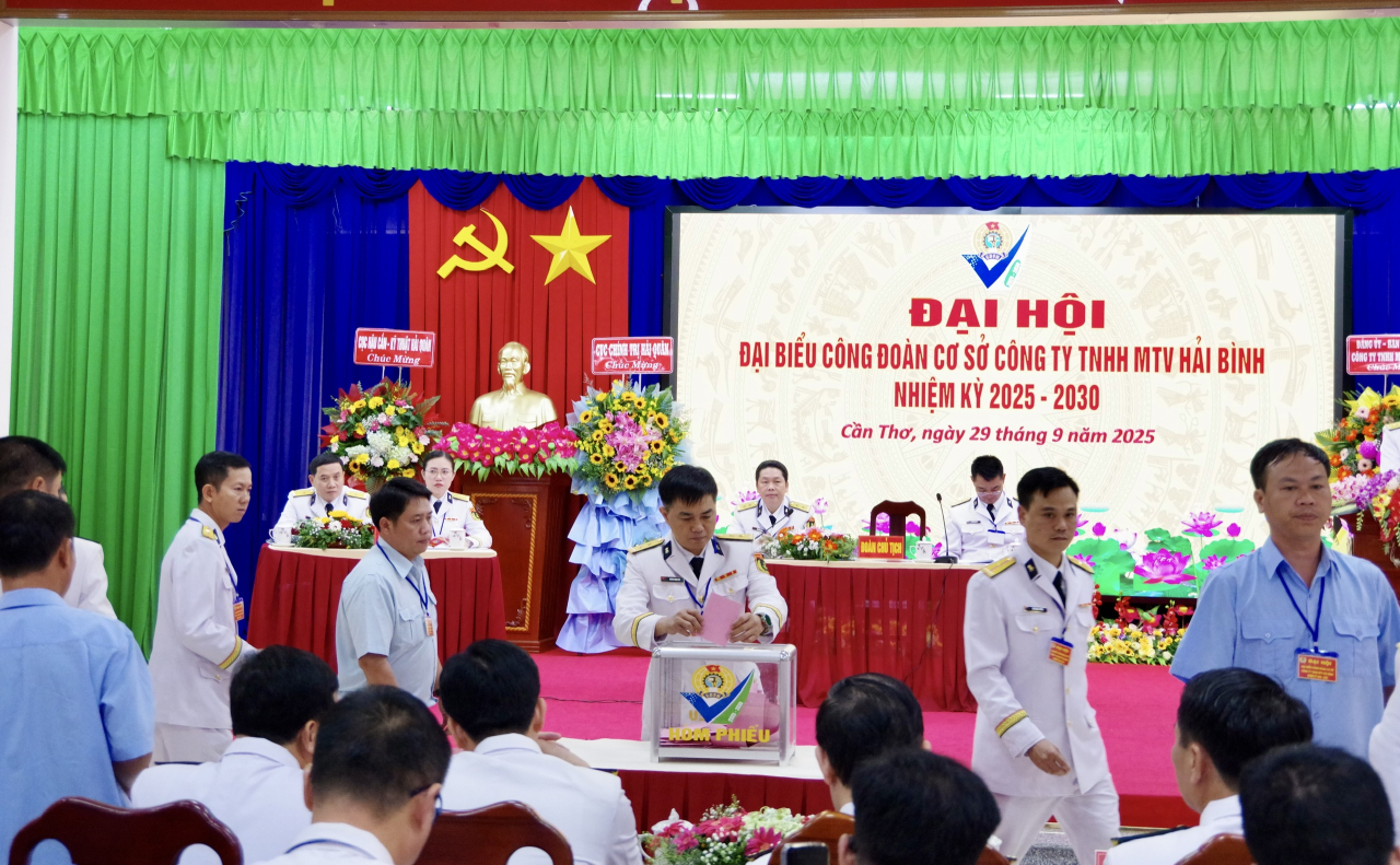 HQ Online - Ngày 29/9, tại TP. Cần Thơ, Công ty TNHH MTV Hải Bình (Nhà máy X55) tổ chức Đại hội đại biểu Công đoàn nhiệm kỳ 2025 - 2030. Đây là đại hội được chọn làm trước để rút kinh nghiệm trong toàn Quân chủng. Đại tá Bùi Đình Tiệp, Phó Chủ nhiệm Chính trị Hải quân dự, chỉ đạo.
