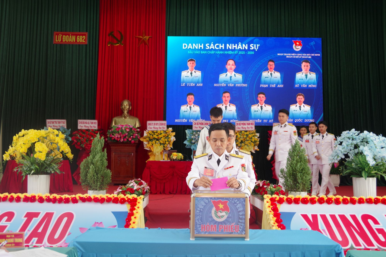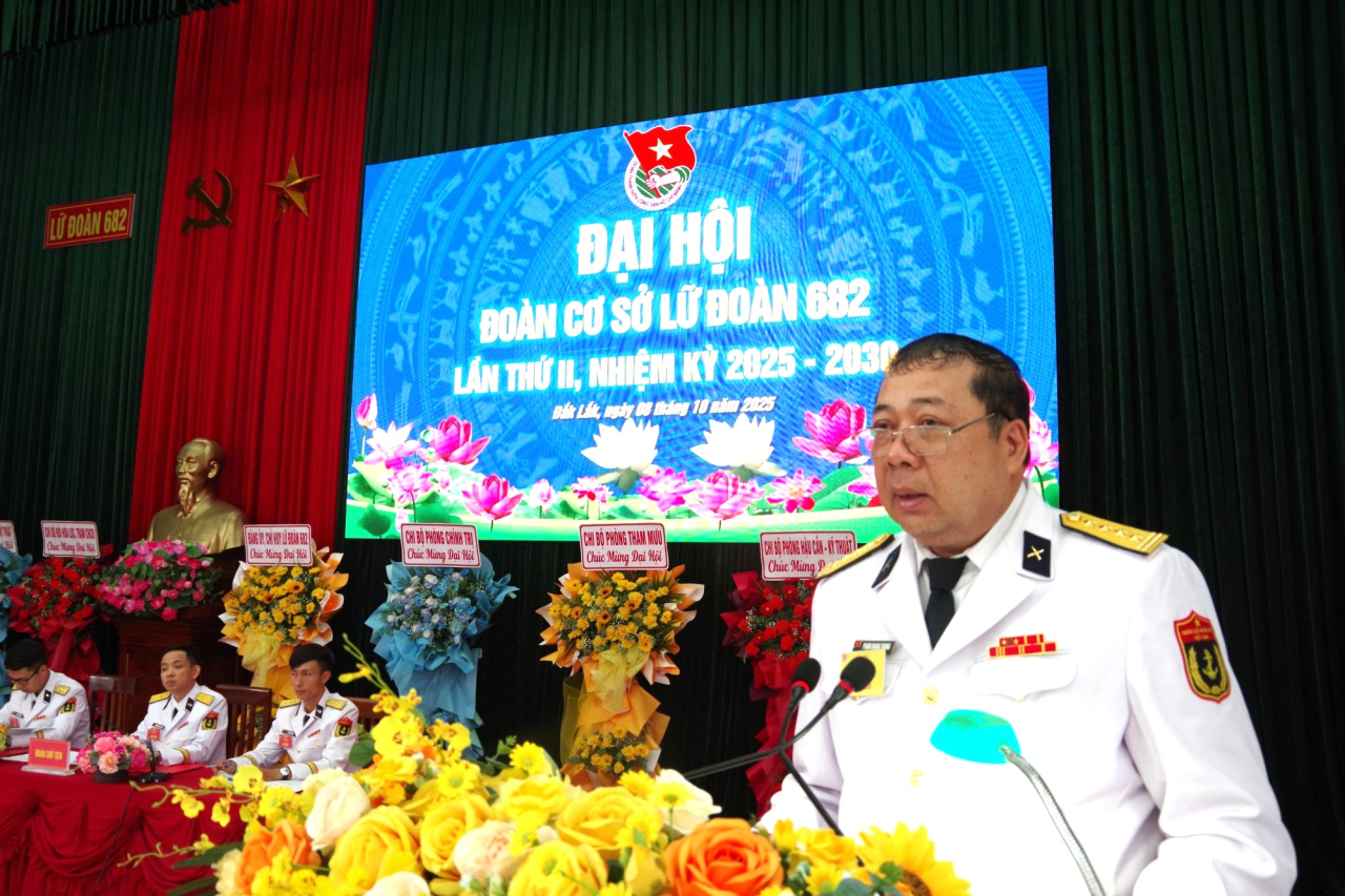 HQ Online - Ngày 8/10, tại Phường Bình Kiến, tỉnh Đắk Lắk, Đoàn cơ sở Lữ đoàn 682 (Vùng 4 Hải quân) tổ chức Đại hội lần thứ II, nhiệm kỳ 2025 - 2030. Đại tá Phạm Quang Trung, Bí thư Đảng ủy, Chính ủy Lữ đoàn chỉ đạo đại hội.
