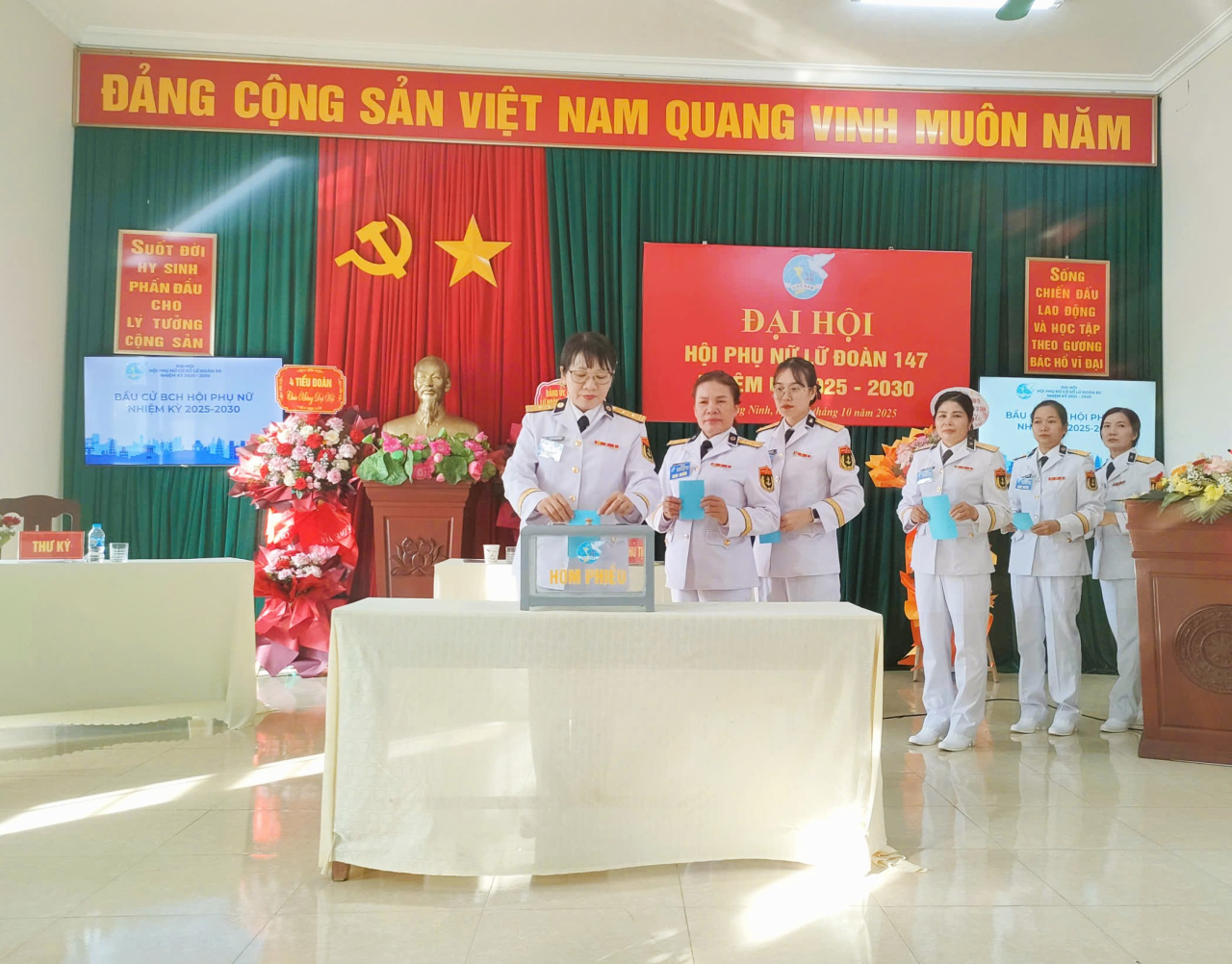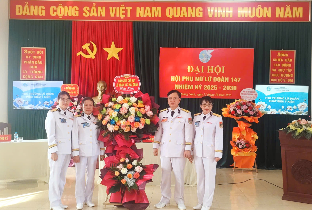 HQ Online - Ngày 15/10, tại Quảng Ninh, Hội phụ nữ Lữ đoàn 147 (Vùng 1 Hải quân) tổ chức thành công Đại hội nhiệm kỳ 2025-2030. Đại tá Lê Tuấn Anh, Bí thư Đảng ủy, Chính ủy Lữ đoàn dự và chỉ đạo đại hội.