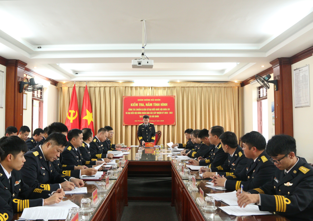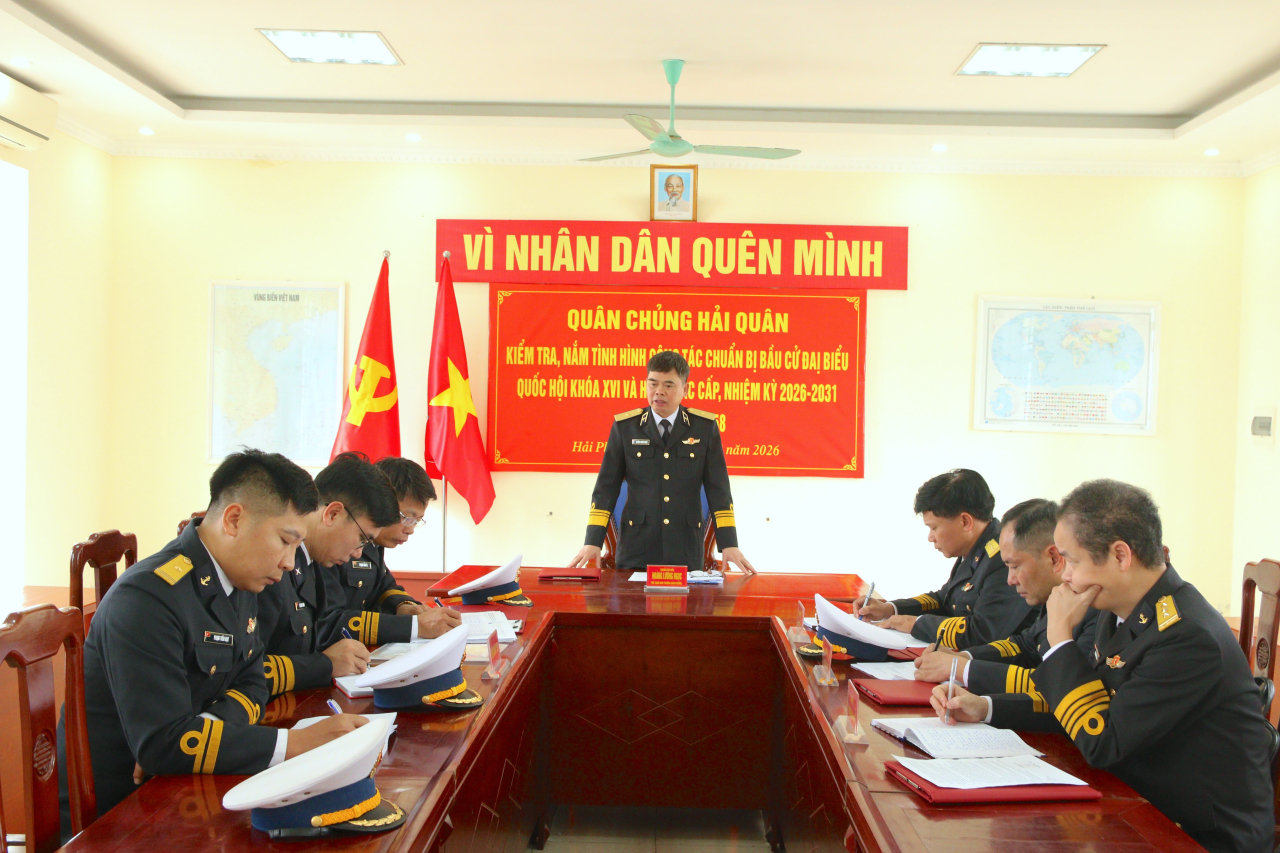 HQ Online - Chiều 4/3, Chuẩn Đô đốc Hoàng Lương Ngọc, Phó Tham mưu trưởng Hải quân đã dẫn đầu đoàn kiểm tra làm việc tại Tiểu đoàn 158 (Vùng 1) và Lữ đoàn 126. Nội dung trọng tâm là rà soát công tác chuẩn bị cho kỳ bầu cử đại biểu Quốc hội khoá XVI và HĐND các cấp nhiệm kỳ 2026 - 2031.
