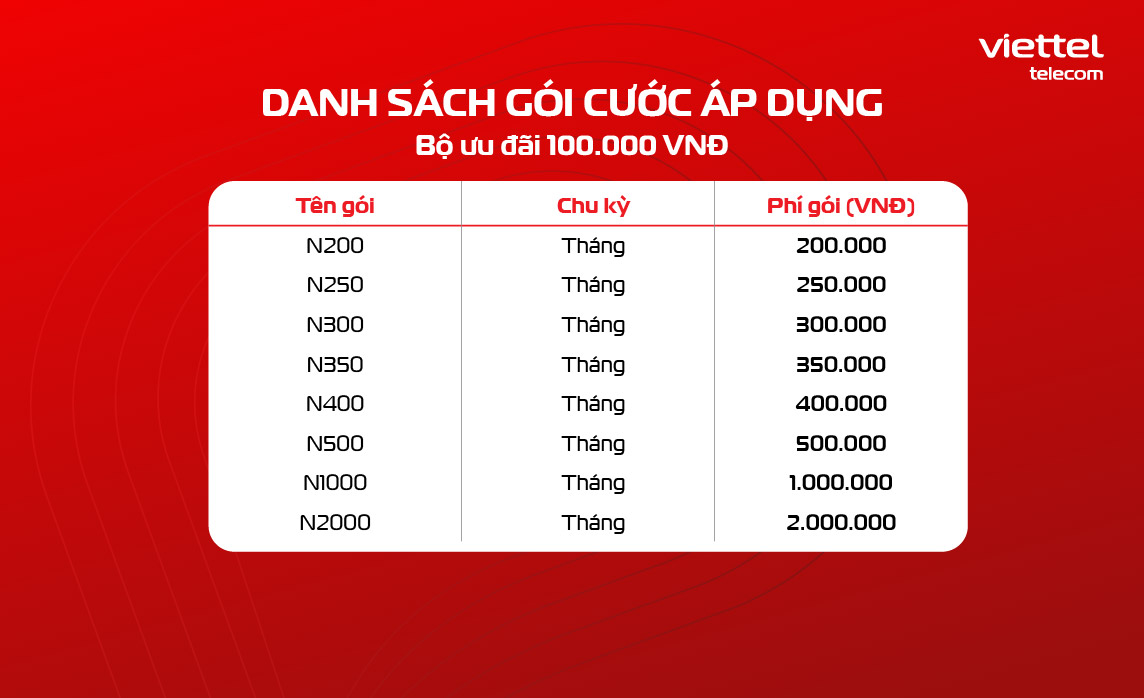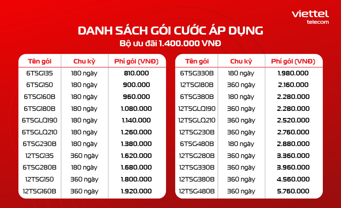 Dưới đây là danh sách chi tiết các gói cước được áp dụng ưu đãi: