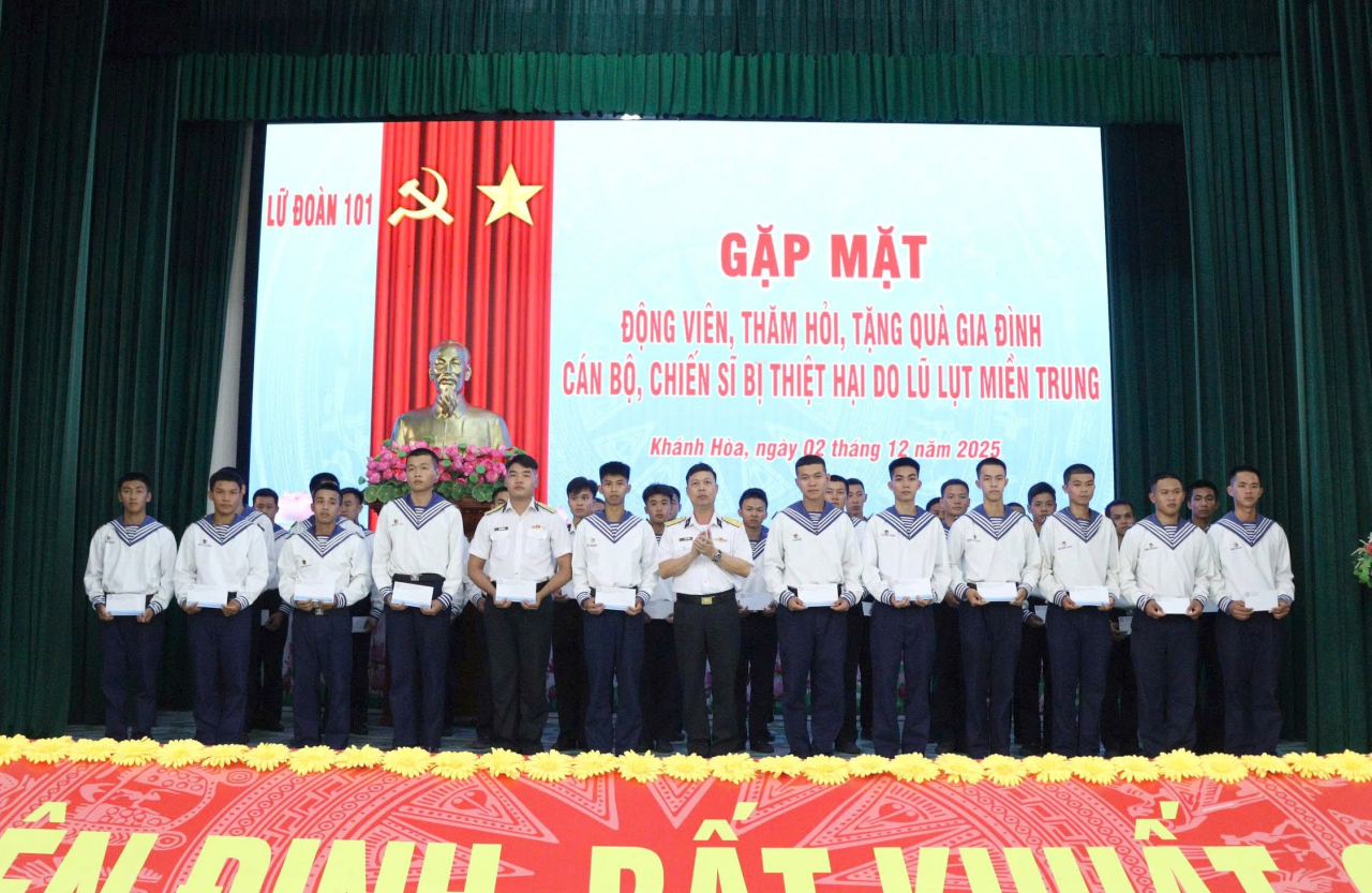 * Cùng ngày, Lữ đoàn 101 đã tổ chức gặp mặt động viên, tặng quà cho 42 cán bộ, chiến sĩ có gia đình trên địa bàn tỉnh Đắk Lắk, Khánh Hòa bị thiệt hại nặng do đợt mưa lũ lịch sử vừa qua.