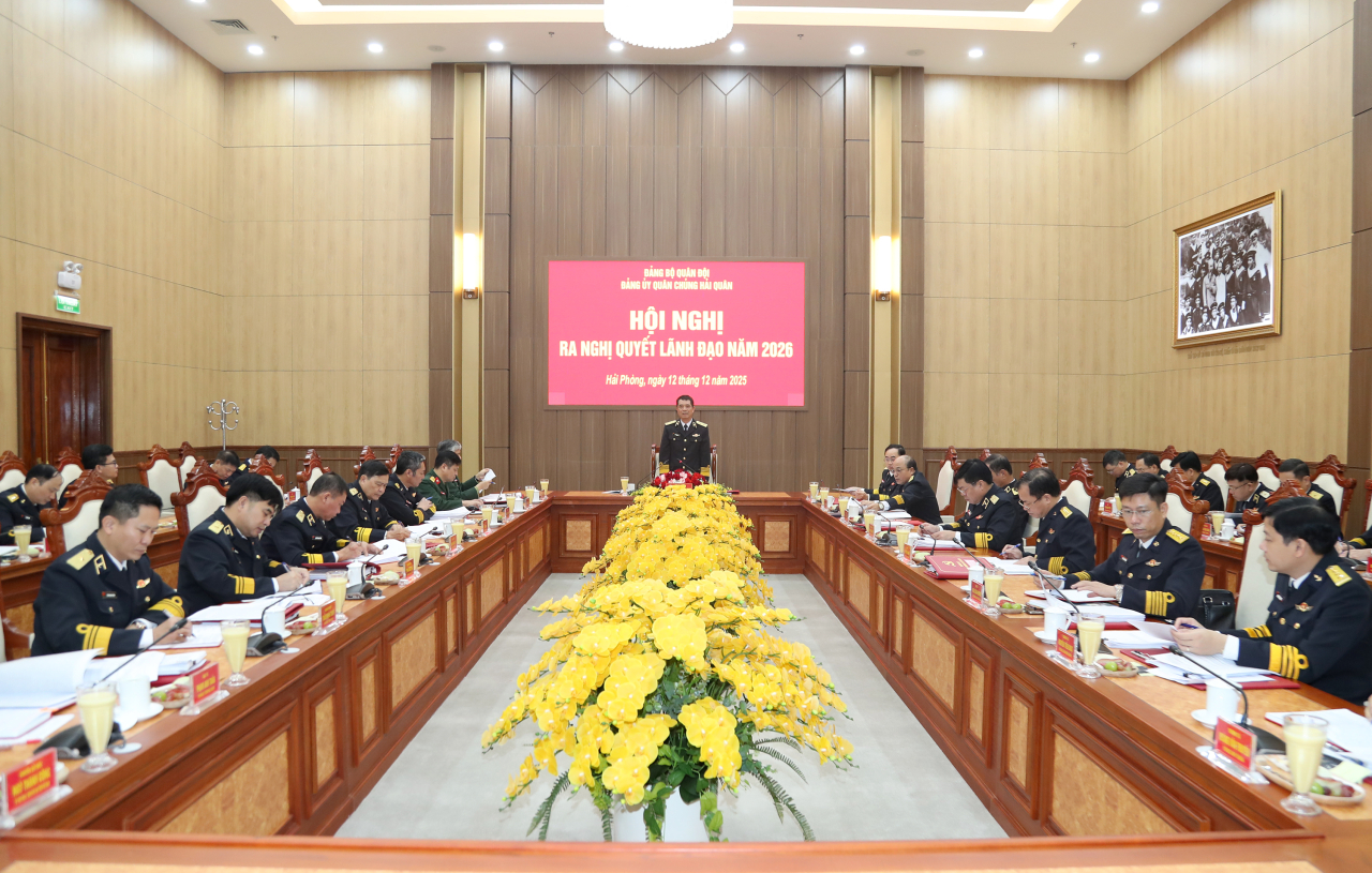 HQ Online - Sáng 12/12, tại Hải Phòng, Đảng ủy Quân chủng Hải quân tổ chức Hội nghị ra nghị quyết lãnh đạo năm 2026. Phó Đô đốc Nguyễn An Phong, Bí thư Đảng ủy, Chính ủy Hải quân chủ trì hội nghị.