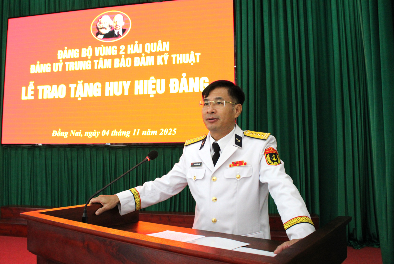 HQ Online - Sáng 4/11, tại Đồng Nai, Đảng uỷ Trung tâm Bảo đảm kỹ thuật thuộc Đảng bộ Vùng 2 Hải quân tổ chức Lễ trao tặng Huy hiệu 30 năm tuổi Đảng. Đại tá Nguyễn Hữu Lương, Bí thư Đảng uỷ, Chính uỷ Trung tâm dự và chỉ đạo.