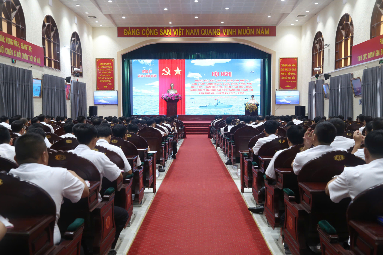 HQ Online - Sáng 2/12, Đảng ủy Vùng 4 Hải quân tổ chức Hội nghị thông báo nhanh kết quả Hội nghị lần thứ 14 Ban Chấp hành Trung ương Đảng khóa XIII và học tập, quán triệt và triển khai thực hiện Nghị quyết Đại hội đại biểu Đảng bộ Quân đội lần thứ XII, nhiệm kỳ 2025-2030. Đại tá Bùi Văn Bền, Ủy viên Ban Thường vụ Đảng ủy, Chủ nhiệm Chính trị Vùng 4 chủ trì.