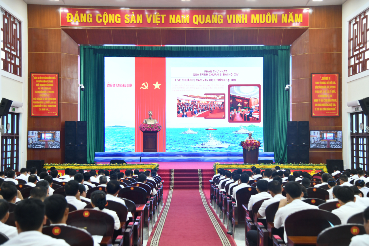 Đồng chí Chính ủy Vùng 5 Hải quân yêu cầu các đơn vị tiếp tục tổ chức thông báo kết quả Đại hội đại biểu toàn quốc lần thứ XIV của Đảng cho các đối tượng còn lại theo quy định, nhằm tạo sự thống nhất về nhận thức và hành động cho cán bộ, chiến sĩ, góp phần thực hiện thắng lợi các mục tiêu, nhiệm vụ mà Đại hội đại biểu toàn quốc lần thứ XIV của Đảng đã đề ra.