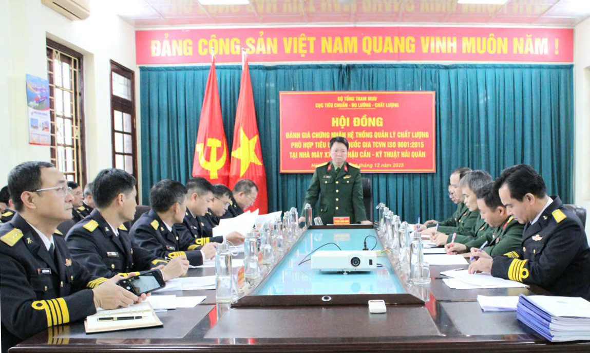 HQ Online - Ngày 30/12, tại Hải Phòng, Cục Tiêu chuẩn-Đo lường-Chất lượng (TC-ĐL-CL), Bộ Tổng Tham mưu tổ chức Hội đồng đánh giá chứng nhận Hệ thống quản lý chất lượng phù hợp tiêu chuẩn quốc gia TCVN ISO 9001:2015 cho Nhà máy X70 (Cục Hậu cần-Kỹ thuật Hải quân).