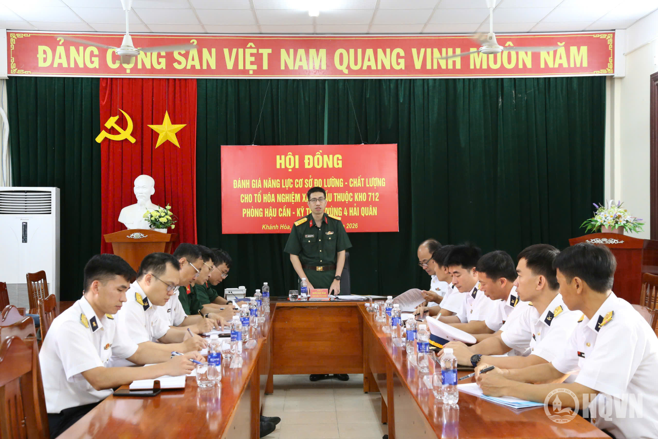 HQ Online - Sáng 24/4, tại phường Bắc Cam Ranh, tỉnh Khánh Hòa, Hội đồng đánh giá năng lực cơ sở đo lường-chất lượng (ĐL-CL) do Thượng tá Nguyễn Ngọc Khánh, Phó trưởng phòng Quản lý Đo lường, Cục Tiêu chuẩn-ĐL-CL (Bộ Tổng Tham mưu) tổ chức kiểm tra, đánh giá năng lực cơ sở ĐL-CL đối với Tổ hóa nghiệm xăng dầu thuộc Kho 712, Phòng Hậu cần-Kỹ thuật, Vùng 4 Hải quân.