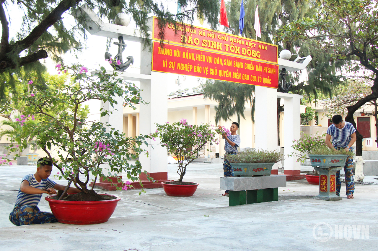 Chiến sĩ trẻ đảo Sinh Tồn Đông chăm sóc cây cảnh, làm đẹp doanh trại