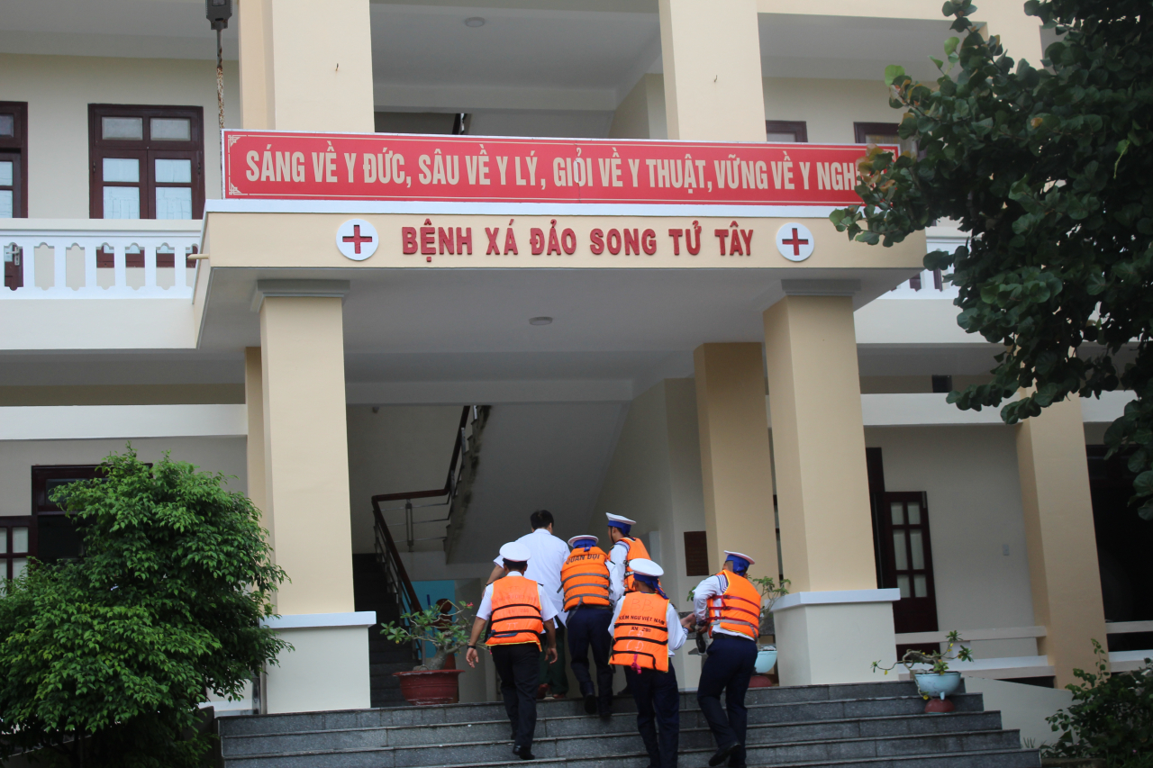 Hiện tại ngư dân Phạm Xuân Hà đang lưu trú trên đảo Song Tử Tây để các y, bác sĩ theo dõi, chăm sóc, điều trị.