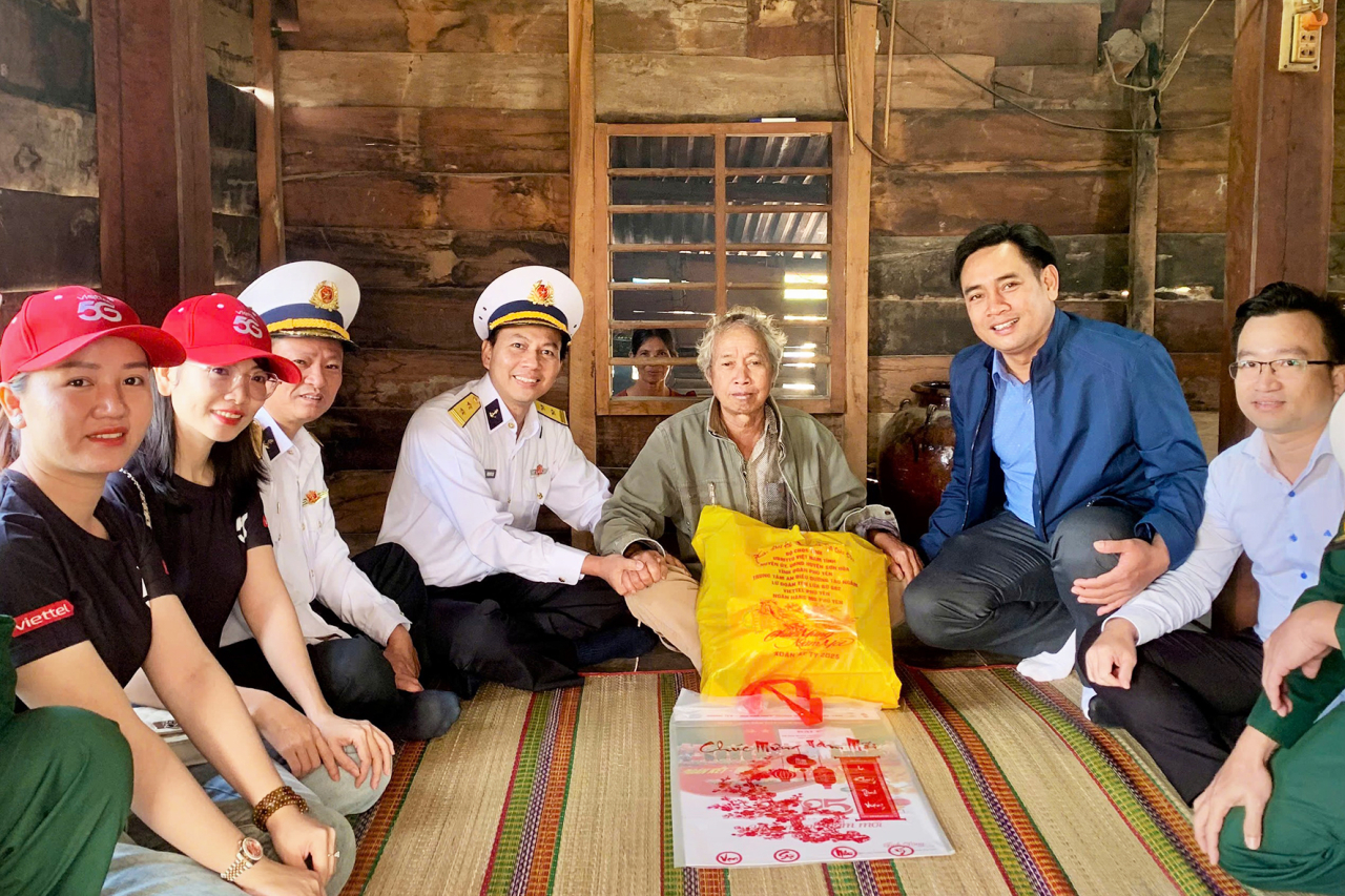 Thủ trưởng Lữ đoàn 682 tặng quà già làng ở xã Suối Trai, tỉnh Đắk Lắk (Ảnh: Thanh Sơn)