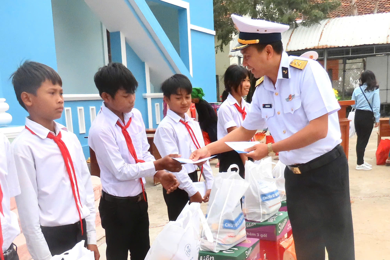 Lữ đoàn 682 tặng quà học sinh có hoàn cảnh khó khăn (Ảnh: Thanh Sơn)
