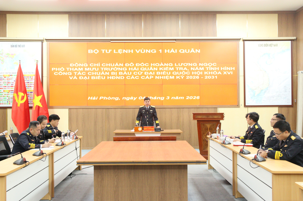 HQ Online - Sáng 4/3, tại Hải Phòng, đoàn kiểm tra do Chuẩn Đô đốc Hoàng Lương Ngọc, Phó Tham mưu trưởng Hải quân làm trưởng đoàn đã kiểm tra, nắm tình hình công tác chuẩn bị bầu cử đại biểu Quốc hội khoá XVI và HĐND các cấp nhiệm kỳ 2026 - 2031 tại Bộ Tư lệnh Vùng 1 Hải quân, Lữ đoàn 679 và Lữ đoàn 131.