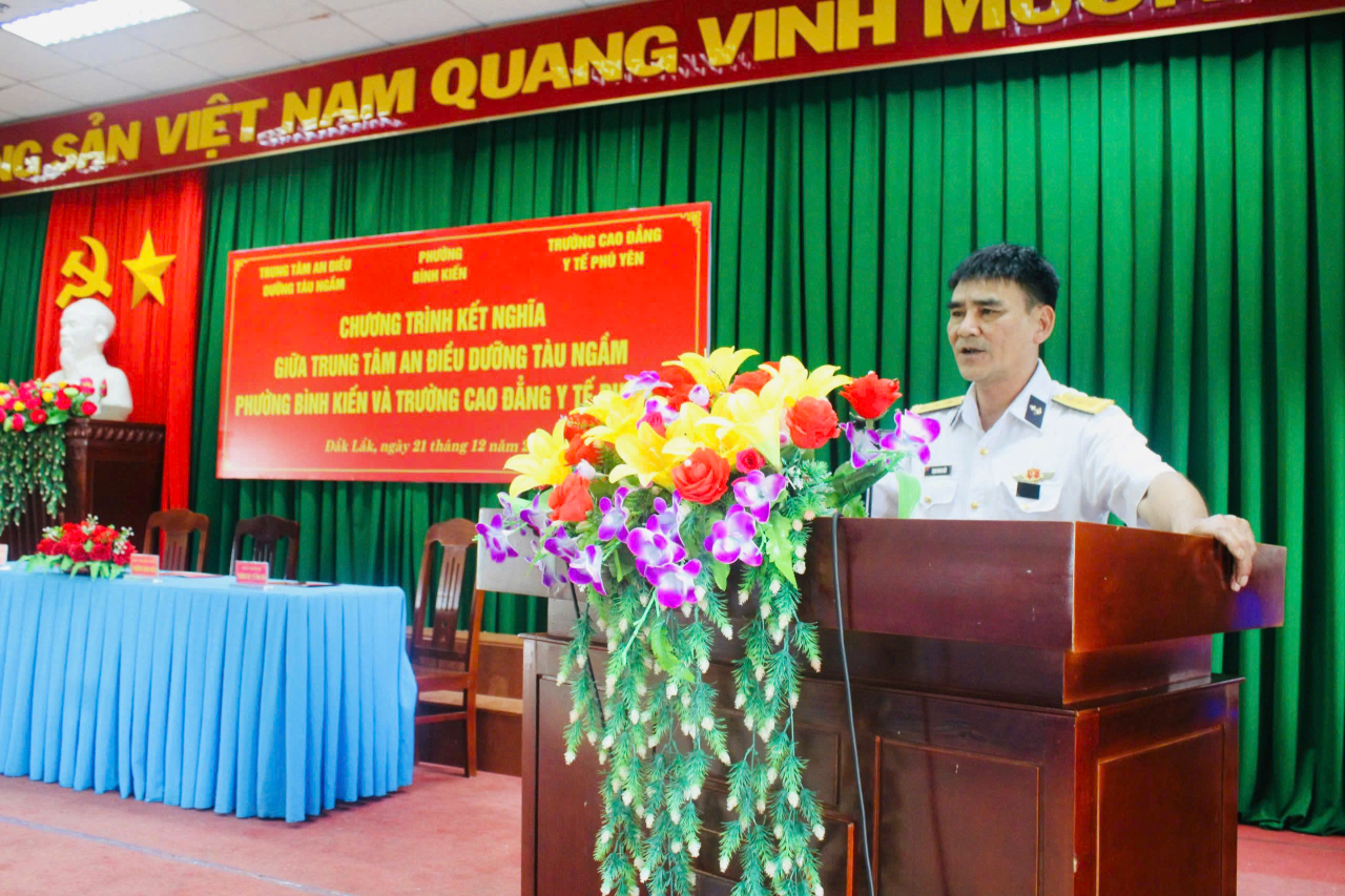 HQ Online - Sáng 21/12, tại Đắk Lắk, Trung tâm An điều dưỡng tàu ngầm, Cục Hậu cần - Kỹ thuật Hải quân phối hợp với phường Bình Kiến, tỉnh Đắk Lắk và Trường Cao Đẳng y tế Phú Yên tổ chức chương trình kết nghĩa năm 2025. Thượng tá Trịnh Minh Hiếu, Bí thư Đảng ủy, Chính ủy Trung tâm chủ trì.
