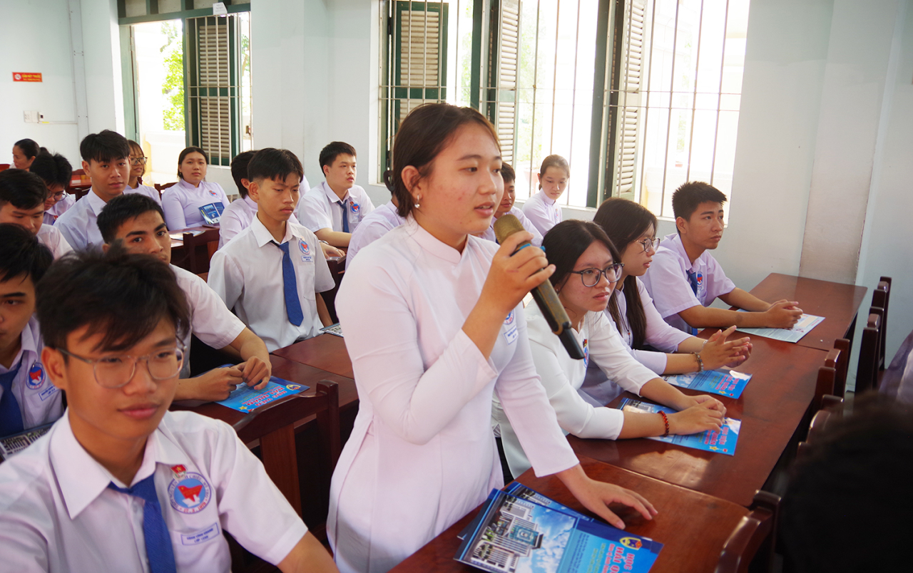 Học sinh đặt câu hỏi với báo cáo viên