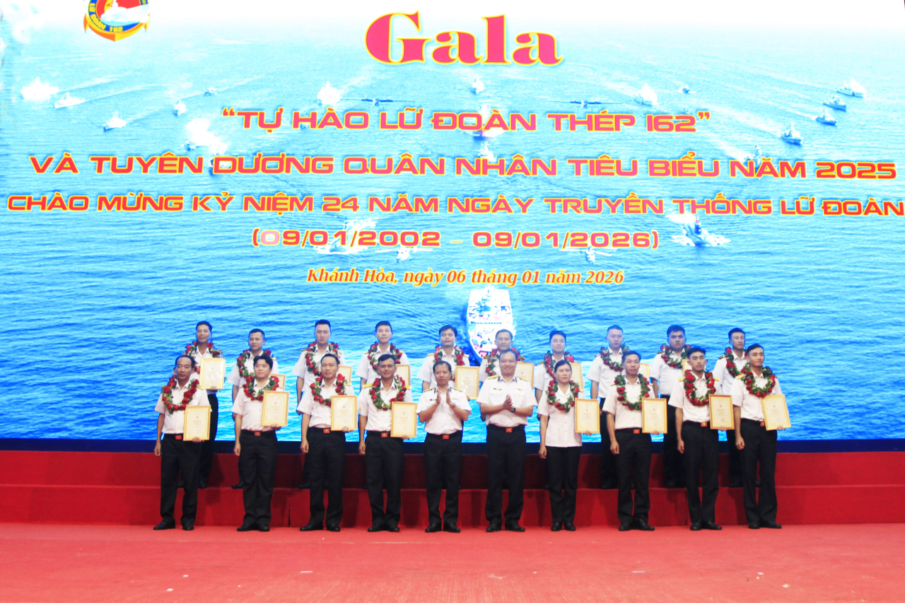 HQ Online - Tối 6/1, tại phường Bắc Cam Ranh, tỉnh Khánh Hòa, Lữ đoàn 162, Vùng 4 Hải quân tổ chức đêm gala “Tự hào Lữ đoàn thép 162” và tuyên dương 24 quân nhân tiêu biểu năm 2025, nhân kỷ niệm 24 năm Ngày truyền thống đơn vị (9/1/2002 – 9/1/2026). Thượng tá Trần Văn Vương, Lữ đoàn trưởng dự và chủ trì.