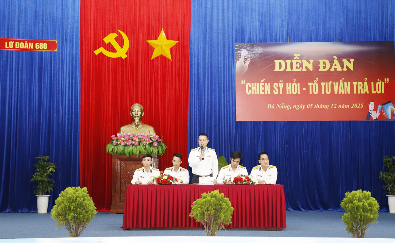 HQ Online - Chiều 5/12, tại TP. Đà Nẵng, Lữ đoàn 680, Vùng 3 Hải quân tổ chức diễn đàn với chủ đề “Chiến sĩ hỏi – Tổ tư vấn trả lời”. Đây là đơn vị được chọn làm trước để rút kinh nghiệm trong toàn Vùng 3.