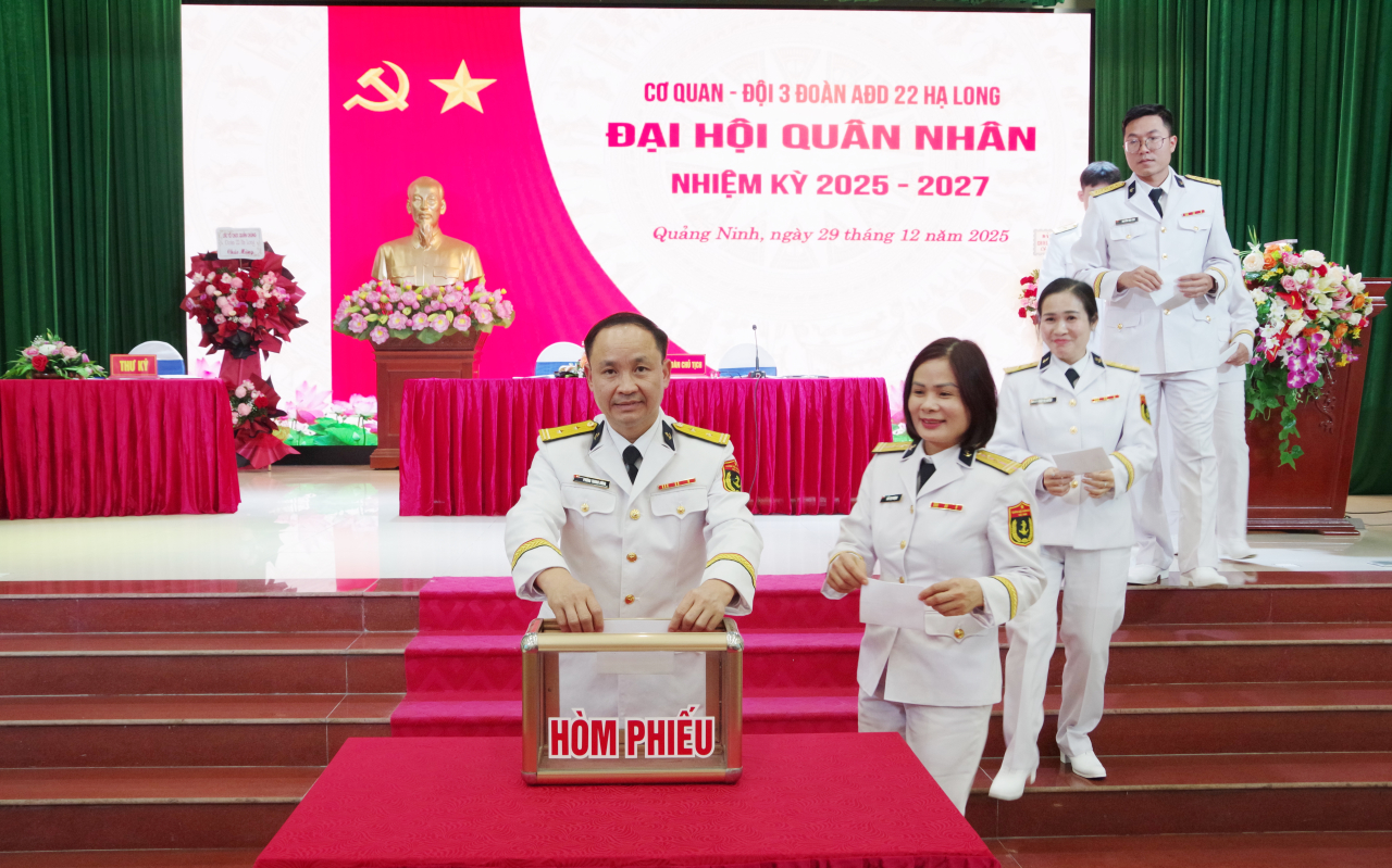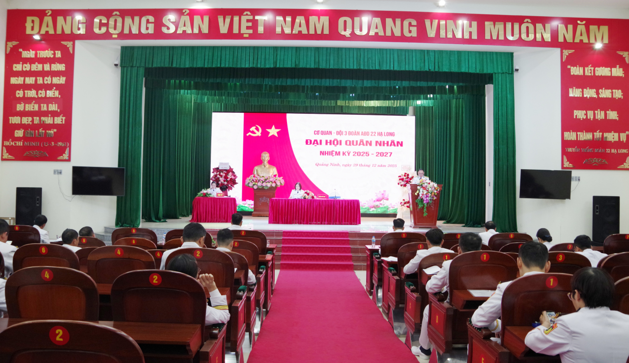 HQ Online - Chiều 29/12, tại Quảng Ninh, Đảng ủy, chỉ huy Đoàn An điều dưỡng 22 Hạ Long (Cục Chính trị Hải quân) đã chỉ đạo Đội 3 tổ chức Đại hội quân nhân nhiệm kỳ 2025 – 2027 làm trước. Dự, chỉ đạo có Trung tá Nguyễn Đức Thảo, Phó đoàn trưởng.