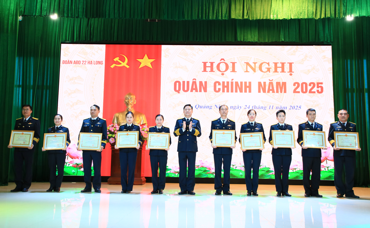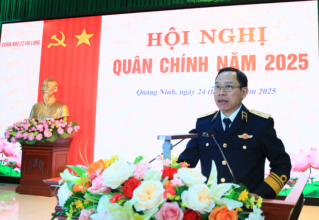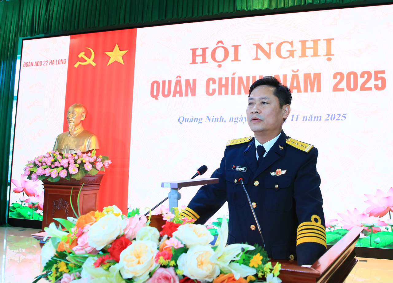 HQVN - Chiều 24/11, tại Quảng Ninh, Đoàn An điều dưỡng (AĐD) 22 Hạ Long, Cục Chính trị Hải quân tổ chức Hội nghị Quân chính năm 2025. Chuẩn Đô đốc Hồ Thanh Hoàn, Bí thư Đảng uỷ Cục Chính trị, Phó Chủ nhiệm Chính trị Hải quân dự và chỉ đạo. Đại tá Phạm Văn Chưởng, Đoàn trưởng chủ trì hội nghị.