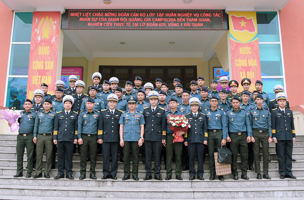 HQ Online - Sáng 12/12, tại TP. Hải Phòng, đoàn cán bộ Quân đội Hoàng gia Campuchia do Đại tá Vy Narann, Phó trưởng phòng nhân sự, Bộ Tư lệnh Hiến binh Quân đội Hoàng gia Campuchia làm trưởng đoàn, đã đến trao đổi kinh nghiệm tiến hành công tác cán bộ tại tại Lữ đoàn 679, Vùng 1 Hải quân.