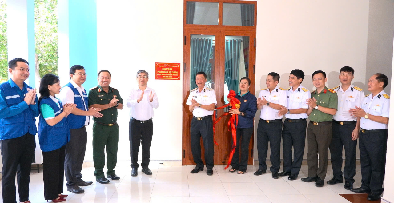 Đoàn công tác cắt băng khánh thành công trình phòng khách hội trường cho Bộ Tư Vùng 4 do TP. Hồ Chí Minh tặng