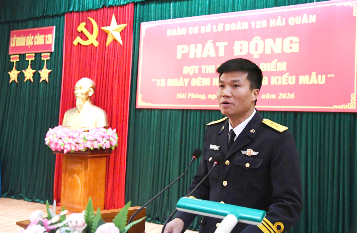 HQ Online - Tối 13/1, tại phường Hòa Bình, thành phố Hải Phòng, Đoàn cơ sở Lữ đoàn Đặc công Hải quân 126 tổ chức phát động đợt thi đua cao điểm “15 ngày đêm hành động kiểu mẫu”. Đại tá Mai Xuân Hưởng, Chính ủy Lữ đoàn dự và chỉ đạo.